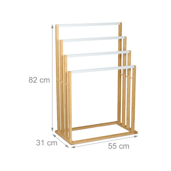 Šis rankšluosčių stovas yra puikus pasirinkimas tiems, kurie nori sukurti tvarkingą ir estetišką vonios kambario aplinką. Pasirinkite kokybę ir stilių su mūsų bambukiniu rankšluosčių stovu.
