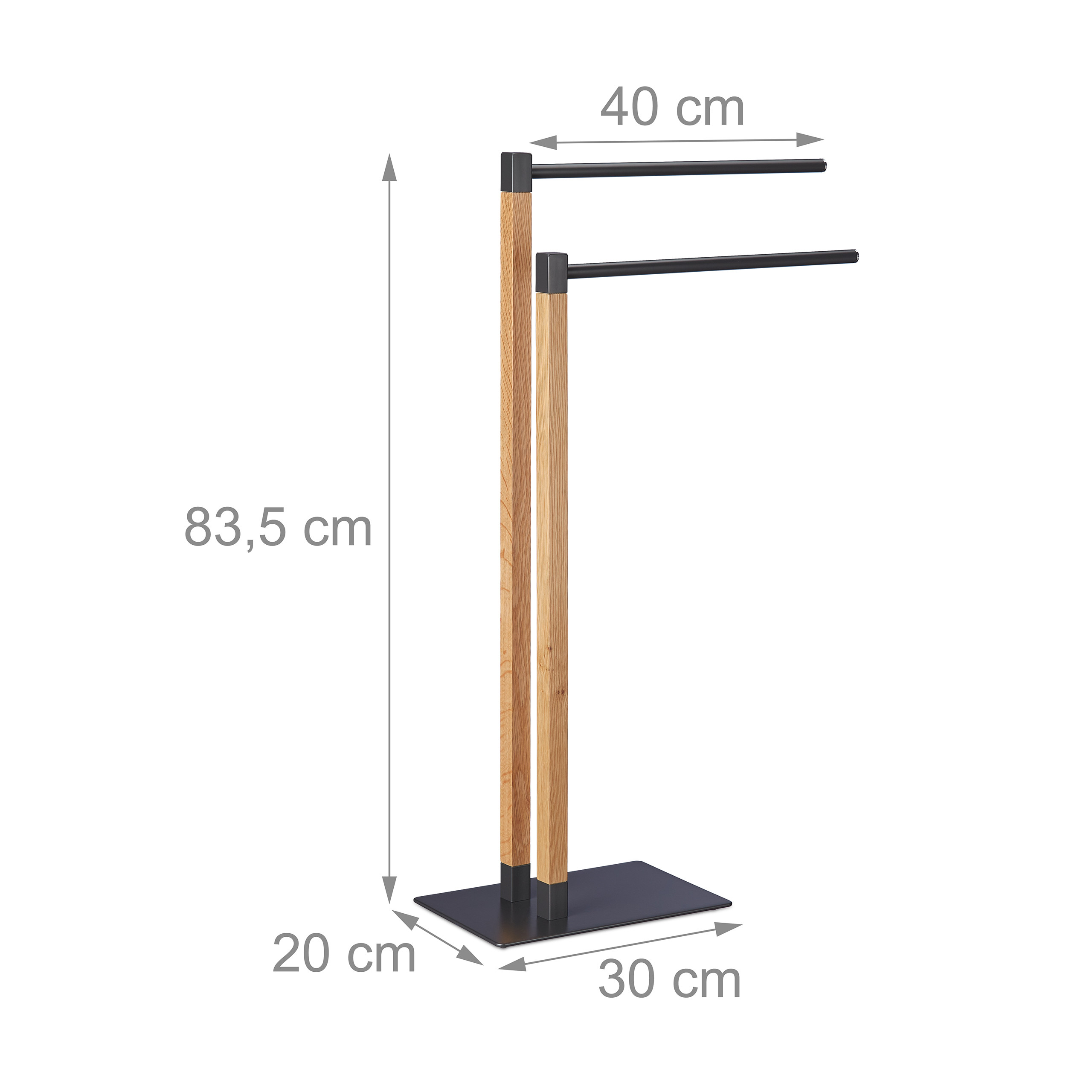 Pristatome elegantišką ir funkcionalų rankšluosčių stovą, kuris taps puikiu akcentu jūsų vonios kambaryje ar virtuvėje. Šis stovas, pagamintas iš aukštos kokybės medžio ir metalo, ne tik suteiks jūsų erdvei modernumo, bet ir padės efektyviai organizuoti rankšluosčius.