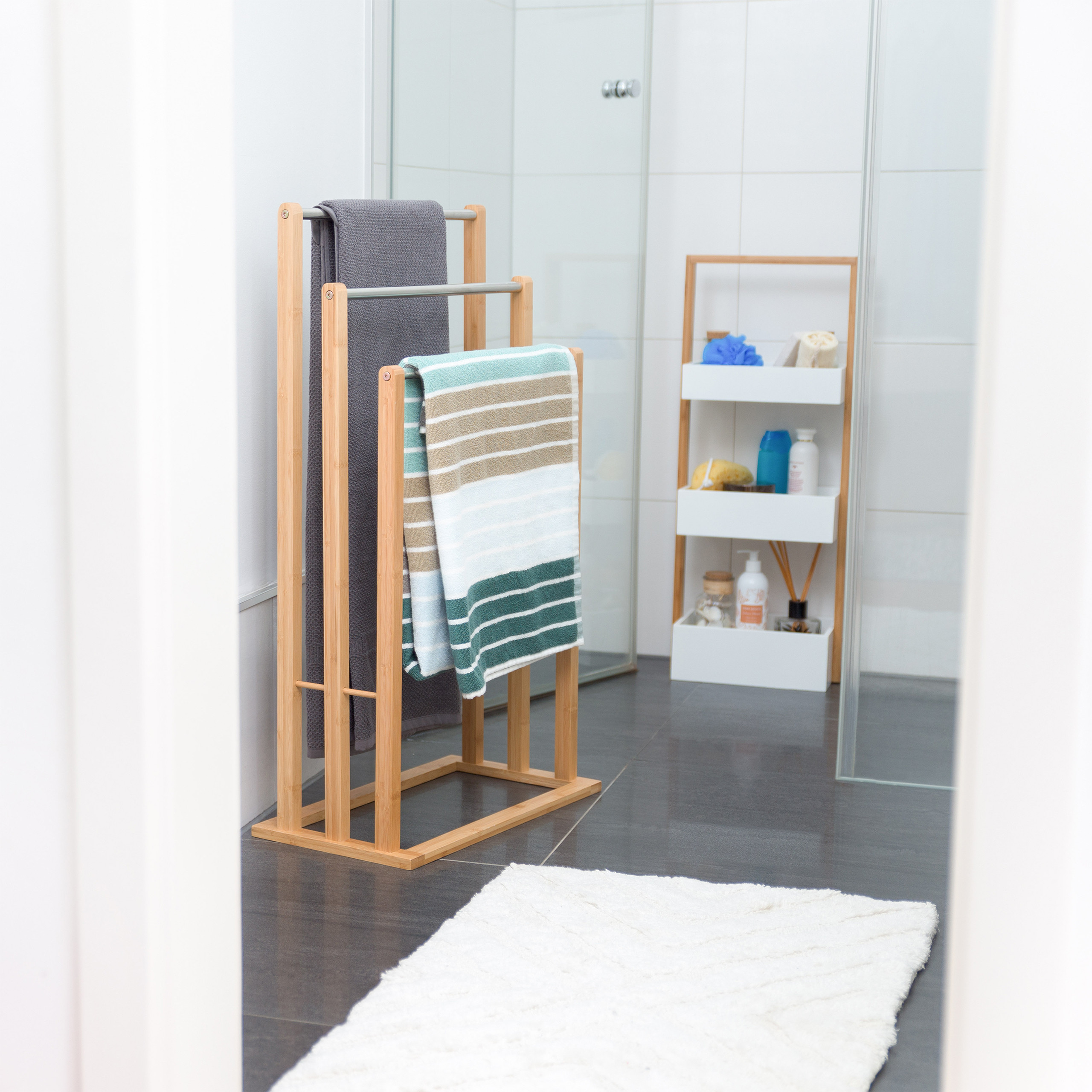 Pasirinkite šį rankšluosčių stovą, jei norite derinti praktiškumą su estetika ir sukurti jaukią bei tvarkingą aplinką savo namuose.
