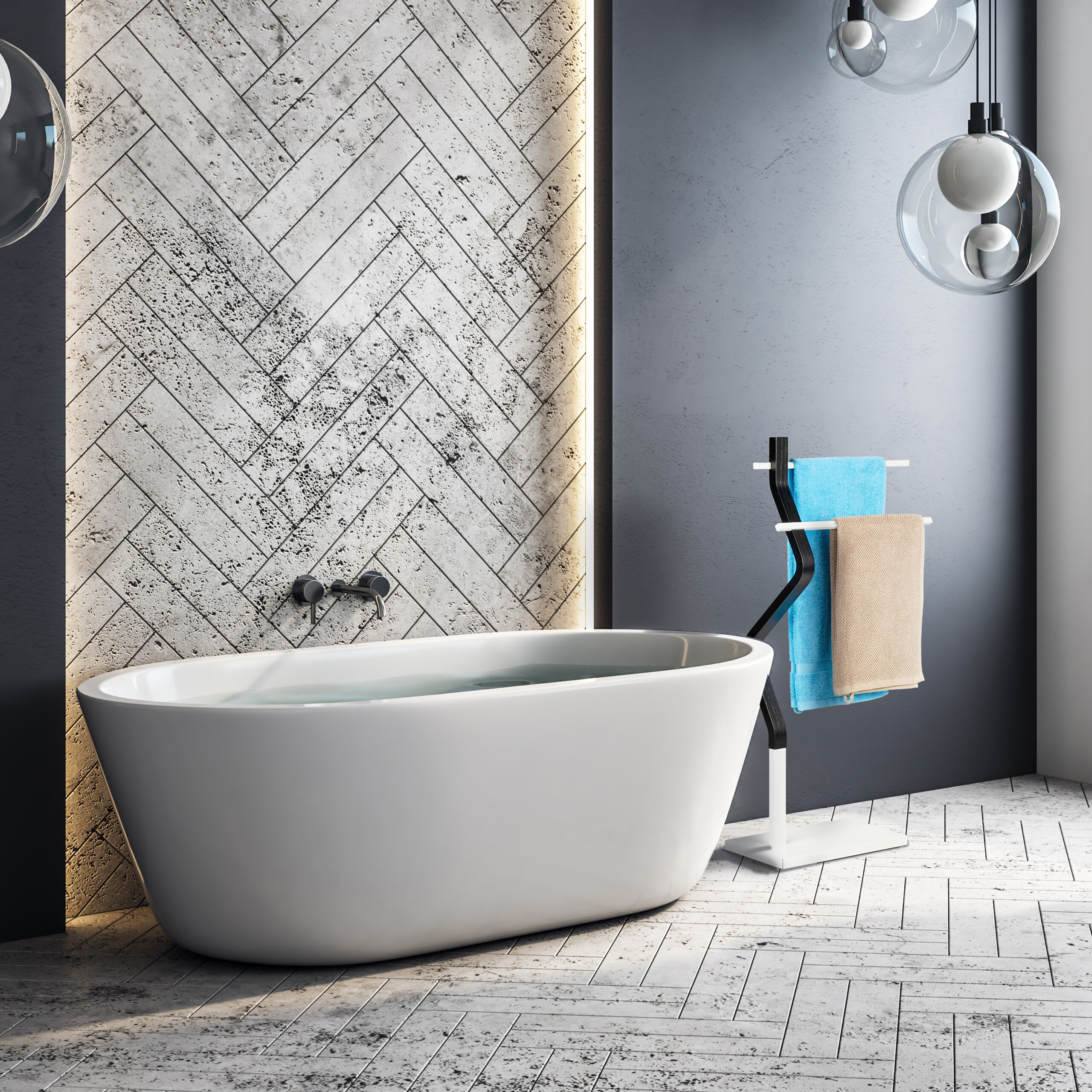 Pasirinkite šį rankšluosčių stovą, kad jūsų vonios kambarys būtų ne tik tvarkingas, bet ir stilingas. Jo baltos ir juodos spalvos derinys suteikia universalumo, leidžiantį lengvai priderinti prie bet kokios spalvų paletės.