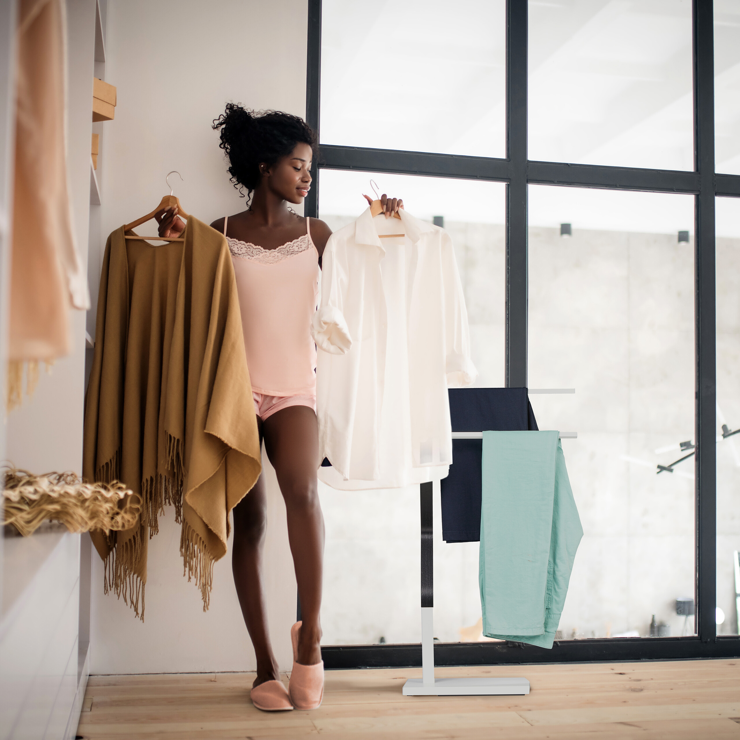 Rankšluosčių stovas 85×43,5x20cm, baltos/juodos spalvos