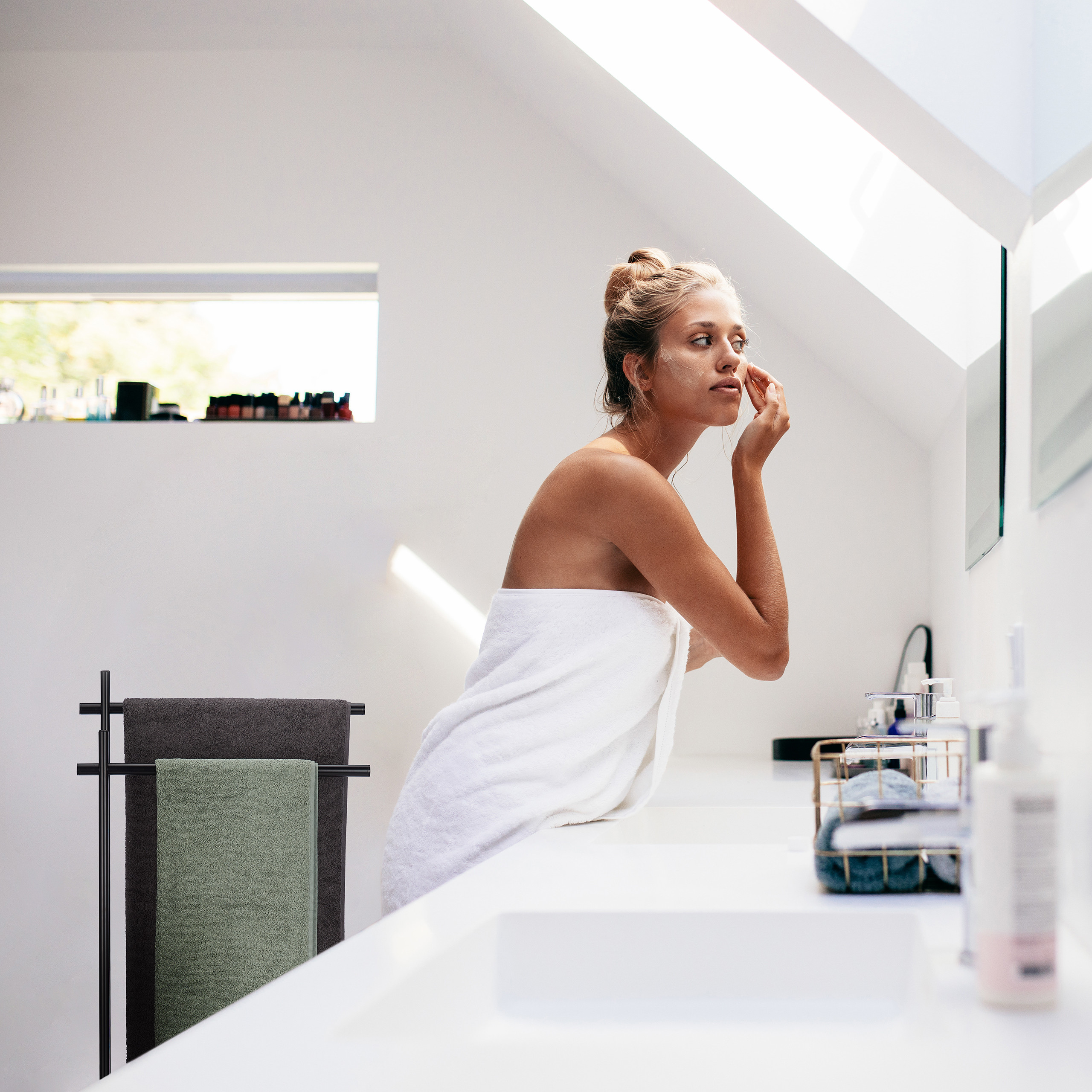 - Vonioje – patogiai laikykite rankšluosčius šalia vonios ar dušo.