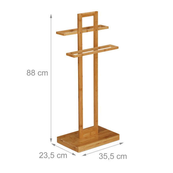Šis rankšluosčių stovas ne tik puikiai atlieka savo funkciją, bet ir tampa stilingu interjero akcentu. Dėl savo elegantiško dizaino ir natūralių medžiagų, jis puikiai dera su įvairiais vonios kambario stiliais.