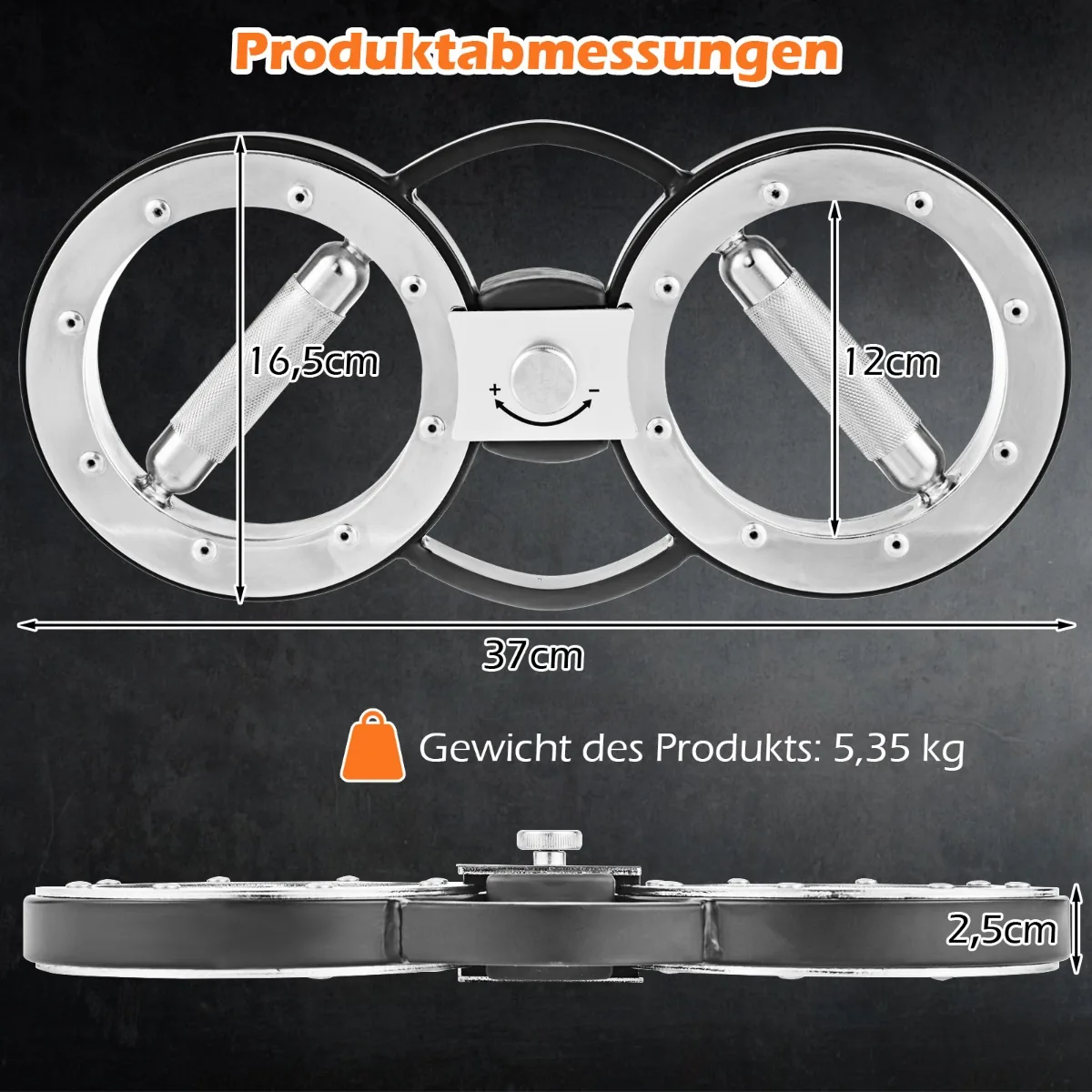 - Gali būti naudojamas kaip hantelis, sveriantis apie 5,35 kg su patogiomis neslystančiomis rankenomis.