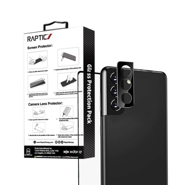 „Glass Protection Pack by Raptic“ – tai greitas būdas apsaugoti tas telefono dalis, kurios yra labiausiai pažeidžiamos mechaninių pažeidimų. Šį aukštos kokybės „du viename“ rinkinį sudaro patvarus 9H apsauginis stiklas, kurio storis 0,33 mm, skirtas jutikliniam ekranui ir grūdintas dangtelis išmaniajame telefone „Samsung Galaxy S22“ fotoaparatui. Kameros objektyvo apsauga buvo sukurta taip, kad puikiai tiktų tiek visam moduliui, tiek atskiriems objektyvams. Tai taip pat neturi įtakos įrašytų vaizdo įrašų ir nuotraukų kokybei.