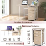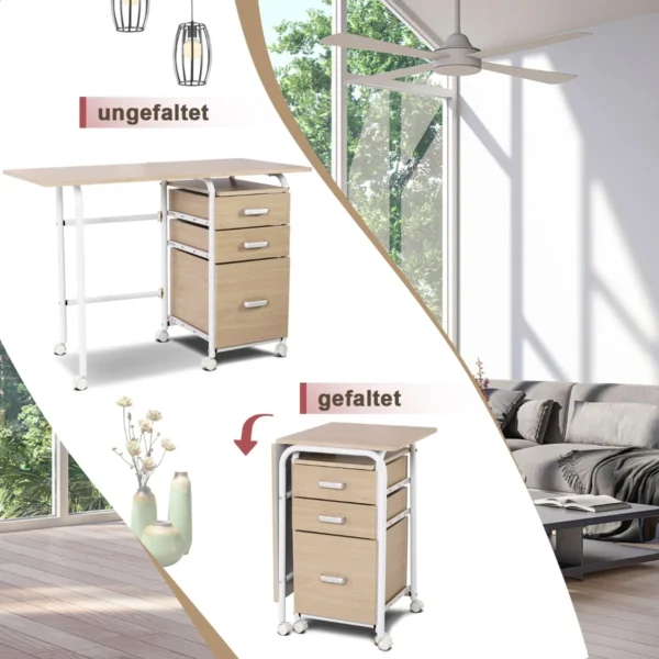 Rašomasis stalas 105x50x75 cm, šviesiai rudos ir baltos spalvos, puikiai tinka namų biurui ar darbo erdvei. Sulankstomas dizainas leidžia sutaupyti vietos, o didelis stalviršis suteikia pakankamai vietos kompiuteriui ir kitiems darbo reikmenims.