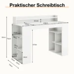 Rašomasis stalas 120x54x90cm, baltos spalvos, skirtas namų biurui ir darbo vietai. Tvirtas ir ergonomiškas biuro stalas su monitoriaus lentyna, užtikrina patogų darbą, mokymąsi ar laisvalaikį. Didelis stalviršis ir papildomos lentynos padidina darbo vietos funkcionalumą.