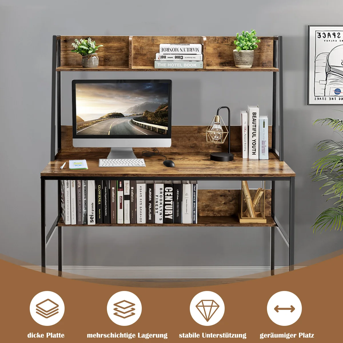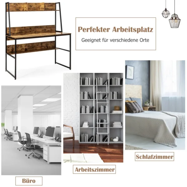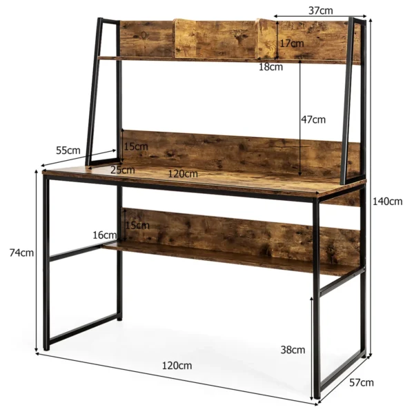 Rašomasis stalas 120x57x140cm rudos ir juodos spalvos skirtas efektyviam darbui namuose ar biure. Kompaktiškas dydis ir daug saugojimo vietos užtikrina tvarkingą darbo aplinką. Stalas tinkamas tiek kompiuteriui, tiek kitai biuro įrangai.