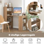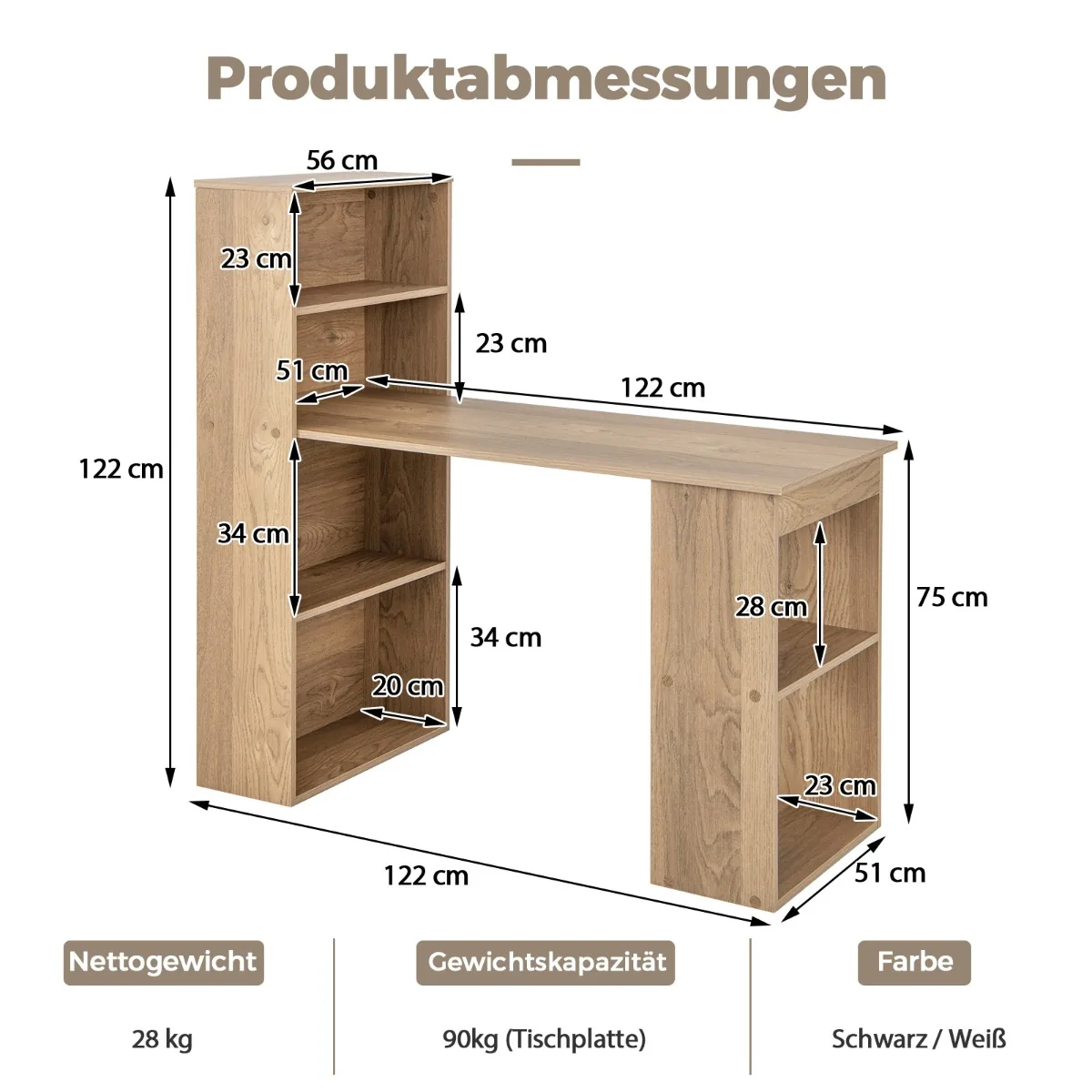 Rašomasis stalas 122x56x122 cm šviesiai rudos spalvos – praktiškas sprendimas darbui ir mokymuisi namuose. Kompleksinė darbo vieta apjungia rašomąjį stalą ir erdvią knygų lentyną, leidžiančią patogiai laikyti knygas, biuro reikmenis ir kitas smulkmenas.