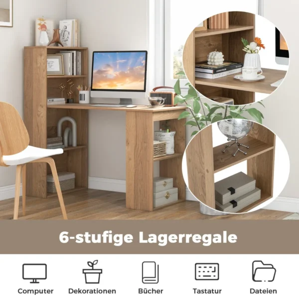 - Rašomasis stalas su 4 pakopų knygų lenta ir 2 pakopų šonine lentyna suteikia daug saugojimo vietos.