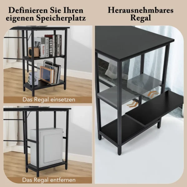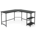 Rašomasis stalas 138x138x75cm juodos spalvos – praktiškas ir erdvus pasirinkimas namams ar biurui. L formos dizainas leidžia optimaliai išnaudoti kampinę erdvę, o tvirta konstrukcija užtikrina stabilumą ir ilgaamžiškumą įvairiems darbams ar žaidimams.