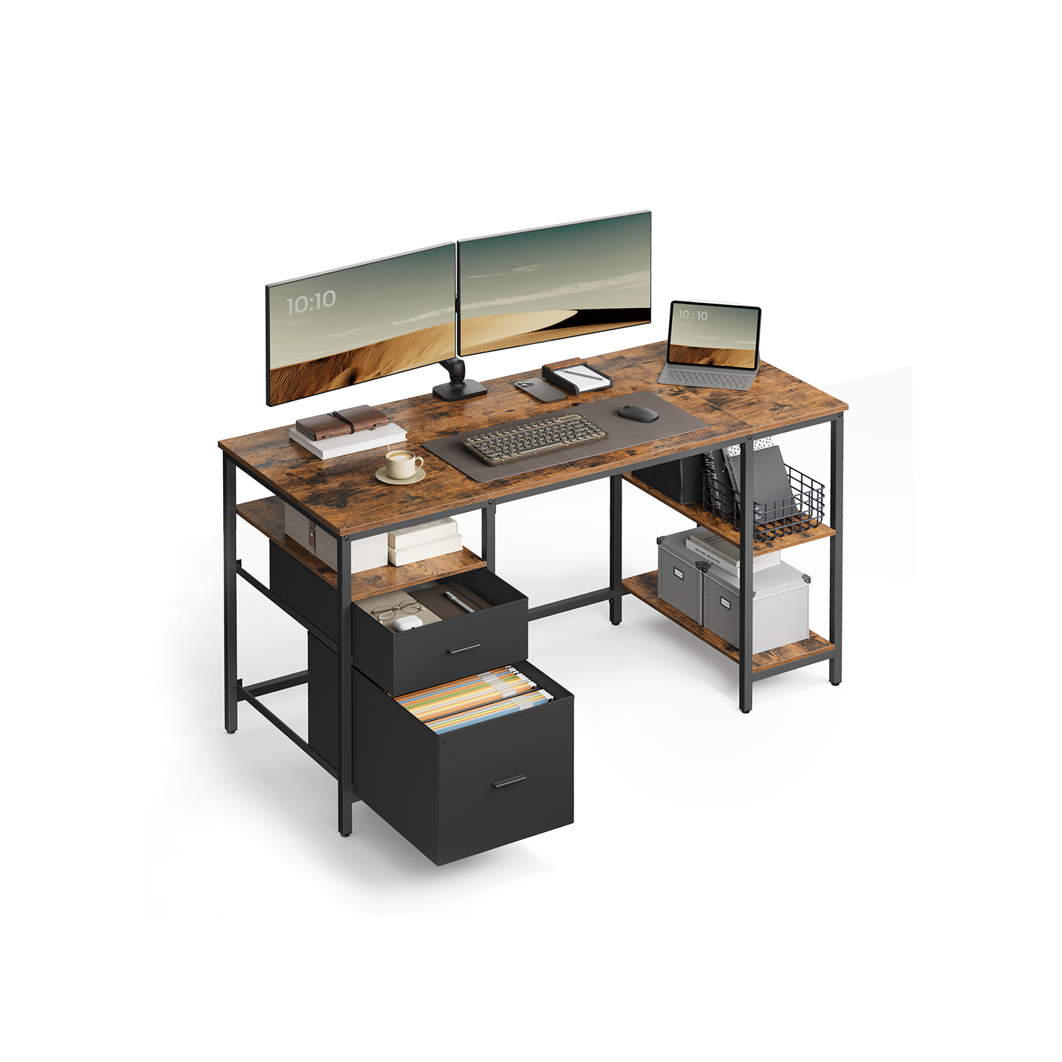 Stalo maksimali statinė stalviršio apkrova yra 50 kg, o kiekvienos lentynos – 10 kg. Tai užtikrina, kad galėsite saugiai laikyti savo daiktus.