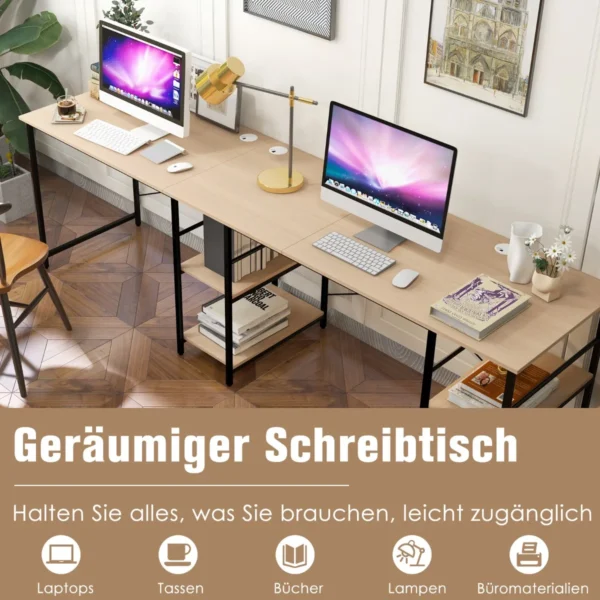 - Dėl L formos konstrukcijos stalas idealiai telpa kampe, o ilga versija (242 cm) skirta dviem dirbantiems.