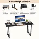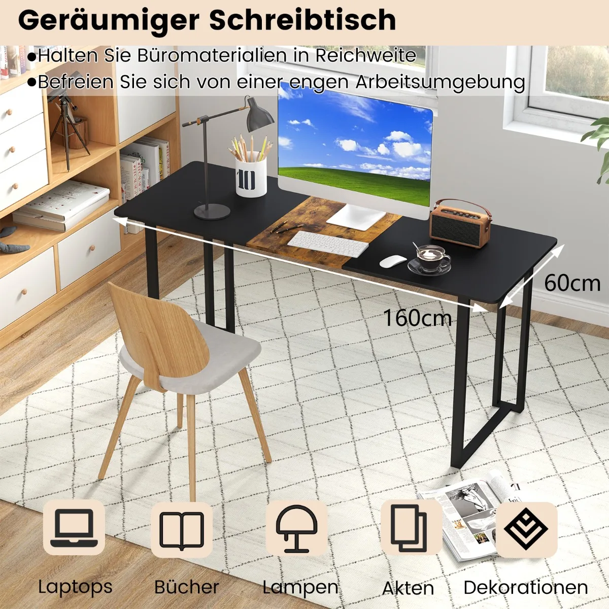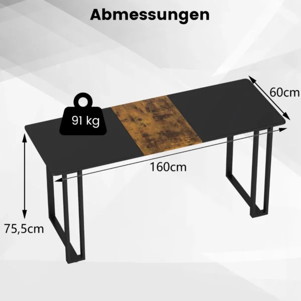 Rašomasis stalas 160x60x75,5 cm juodos ir rudos spalvos puikiai tinka namų biurui, darbui ar studijoms. Didelis stalviršis suteikia pakankamai vietos kompiuteriui, dokumentams ir kitiems darbo įrankiams. Tvirtas metalinis rėmas užtikrina ilgaamžiškumą ir stabilumą naudojant.