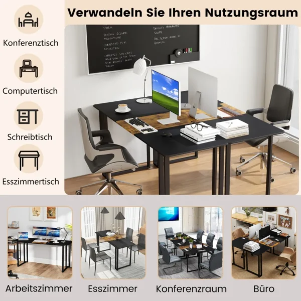 - Tinka kaip rašomasis, kompiuterio, konferencijų ar valgomojo stalas, pramoninio dizaino sprendimas įvairioms erdvėms.