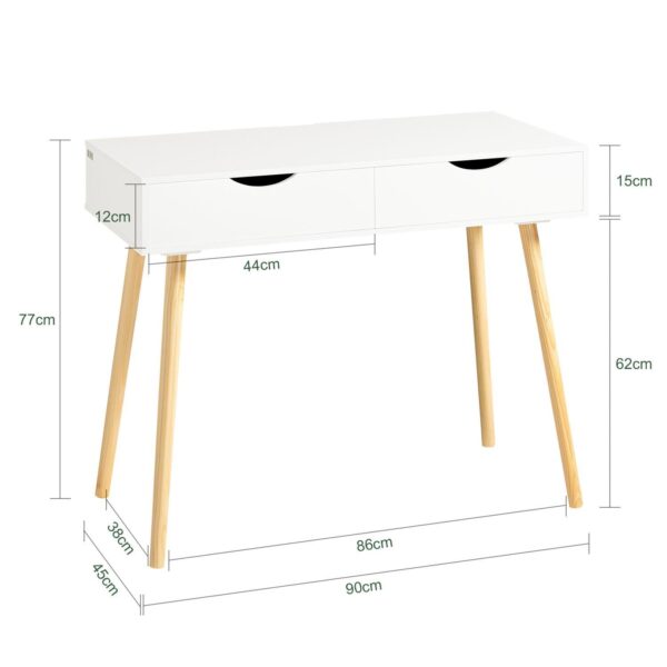 Šis rašomasis stalas 90x45x77 cm, baltos ir šviesiai rudos spalvos, yra puikus pasirinkimas jūsų namų ar biuro interjerui. Jo paprastos ir elegantiškos linijos leidžia lengvai derinti su įvairiais baldų stiliais, suteikiant papildomą saugojimo, darbo ir paviršiaus plotą.