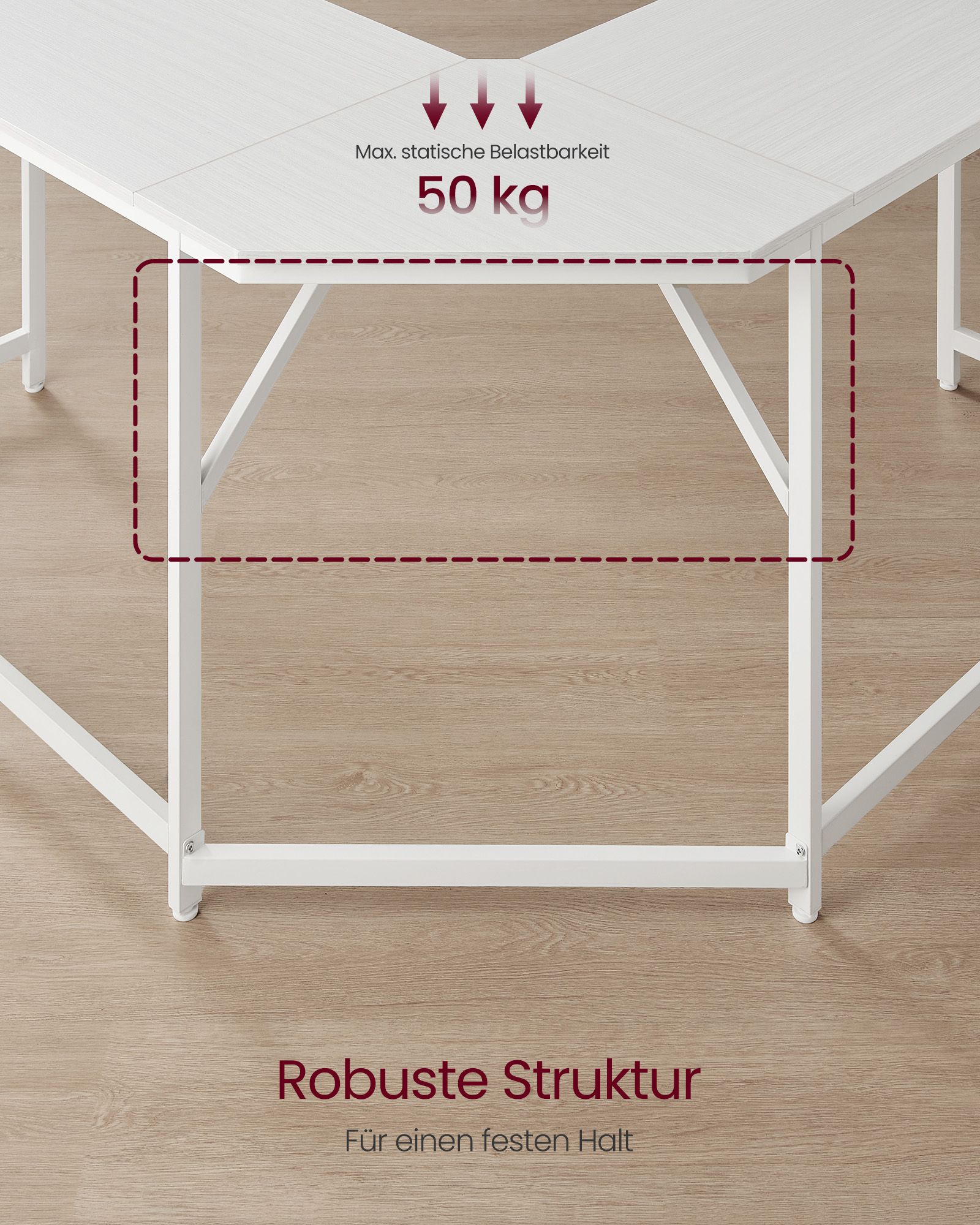 Šis stalas yra pagamintas iš aukštos kokybės medžiagų, užtikrinančių ilgaamžiškumą ir stabilumą. Jo erdvus paviršius suteikia pakankamai vietos darbui, o tvirta konstrukcija leidžia laikyti iki 50 kg svorio. Tai puikus pasirinkimas tiems, kurie vertina kokybę ir stilių.
