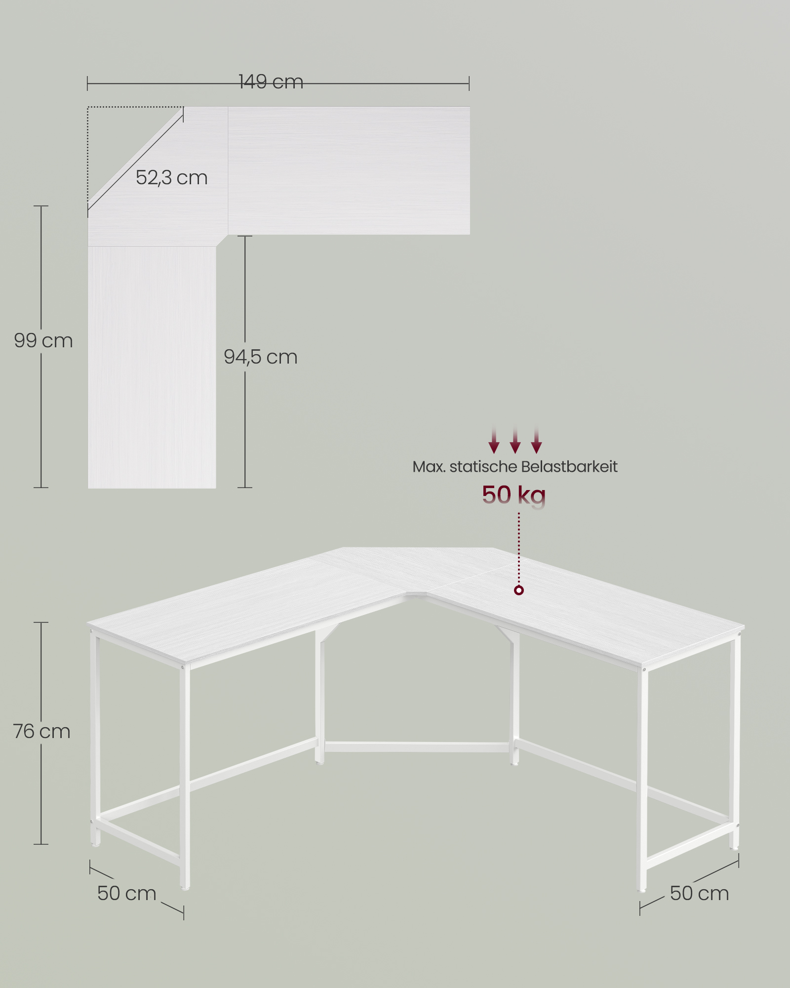 Maksimali bendra statinė apkrova: 50 kg