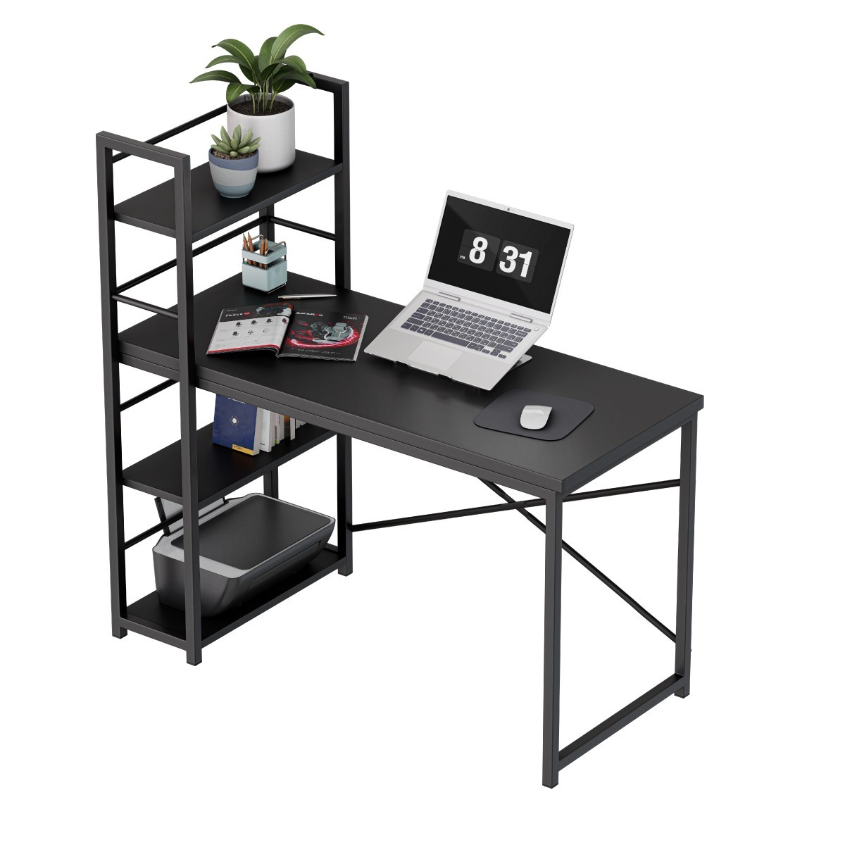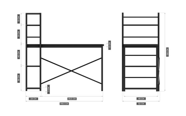 Modernus rašomasis stalas su knygų spinta