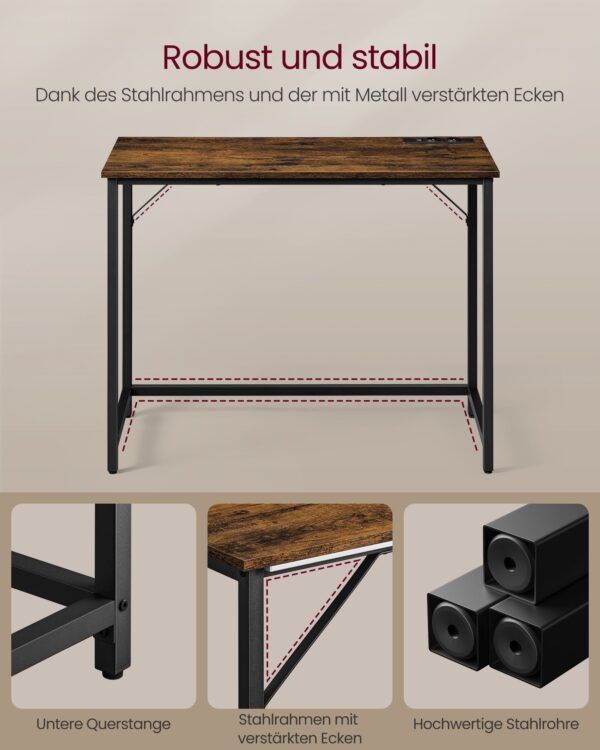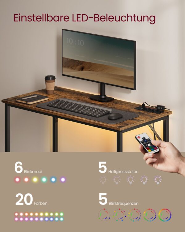 Įneškite modernumo ir funkcionalumo į savo darbo erdvę su šiuo elegantišku rašomuoju stalu. Jo vintažinė ruda-juoda spalvų paletė suteikia stalui išskirtinį charakterį, o integruotas LED apšvietimas užtikrina optimalų apšvietimą bet kokiomis sąlygomis.