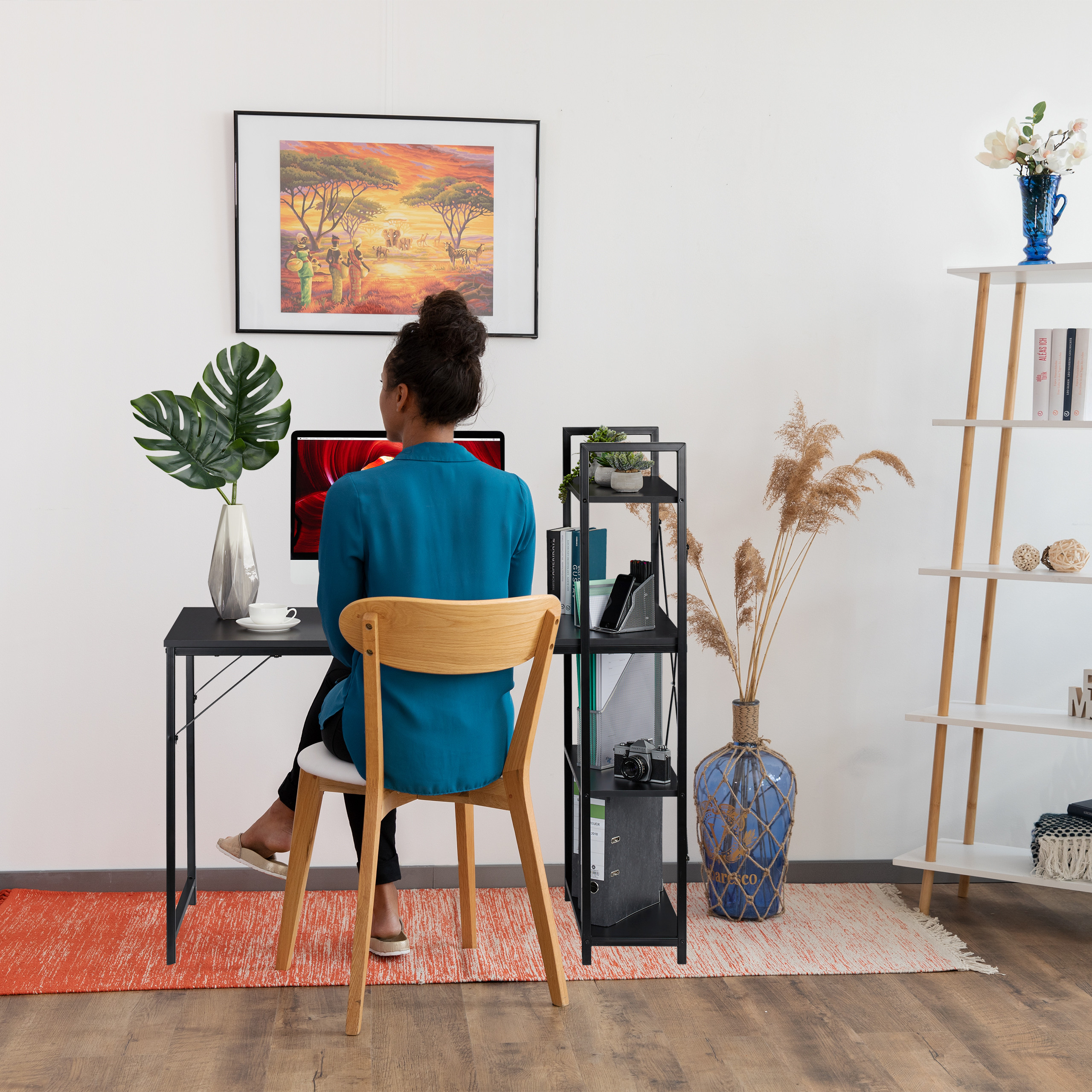 - Funkcionalumas: Stalas su lentyna leidžia efektyviai išnaudoti erdvę, suteikdamas papildomą vietą daiktams laikyti.