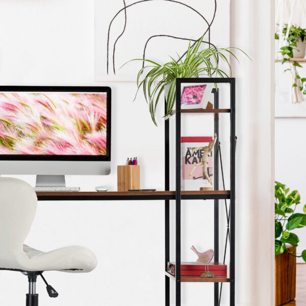 Šis rašomasis stalas su lentyna yra idealus pasirinkimas tiems, kurie vertina stilingą ir praktišką darbo vietą. Investuokite į savo darbo komfortą ir efektyvumą su šiuo puikiu baldu.