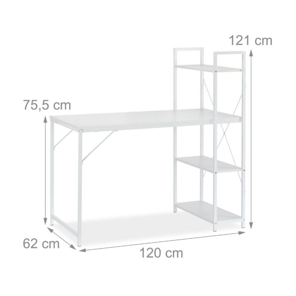 Rašomasis stalas su lentyna 121x120x62cm, baltos spalvos