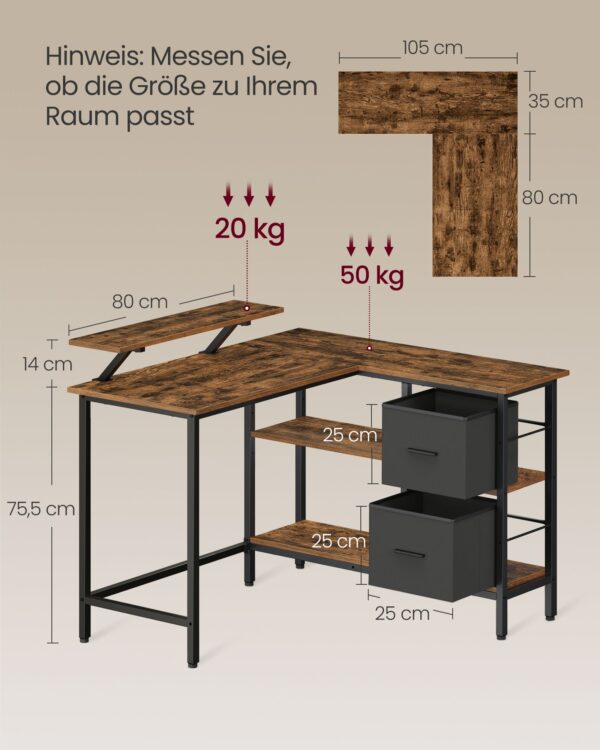 Rašomasis stalas su stalčiais 105x115x89,5 cm – Juodos/Rudos Spalvos