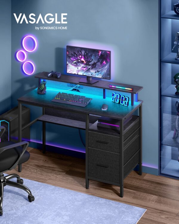 Rašomasis stalas su stalčiais ir įkrovimo stotele 120x55x90cm., juodos spalvos