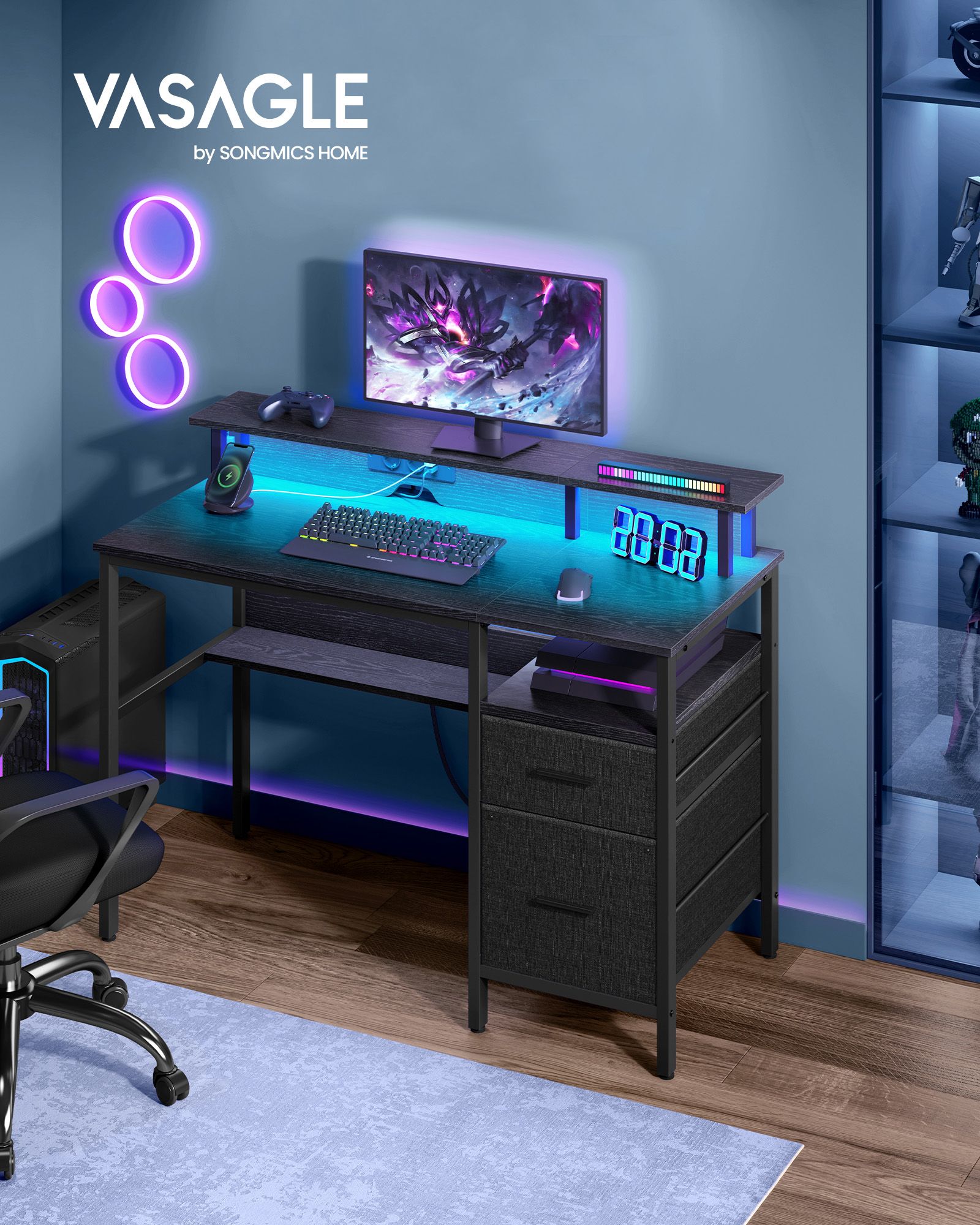 Rašomasis stalas su stalčiais ir įkrovimo stotele