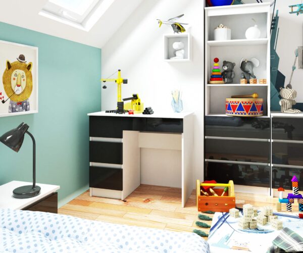 Kompiuterio stalas A-7 pagamintas iš aukštos kokybės, dilimui atsparios laminuotos plokštės. Balta spalva derinama su juodais, žvilgančiais spintelių fasadais. Puikiai tinka žmonėms, vertinantiems savo baldų minimalizmą, paprastumą ir eleganciją. Rašomasis stalas yra labai stabilus ir pagamintas labai kruopščiai, daug dėmesio skiriant kiekvienai smulkmenai. Puikiai tinka biurui, jaunimo kambariui ar svetainei. Tinka tiek darbui, tiek nuotoliniam mokymuisi. Kodėl verta pirkti kompiuterio stalą A-7? ir rašomasis stalas, ir visų stalčių fasadai yra pagaminti iš CD laminuoti, atsparūs trinčiai, kraštai padengti ABS briauna, todėl stalas turi didesnį atsparumą pažeidimams, aiškios ir paprastos instrukcijos tikrai palengvinti kompiuterio stalo surinkimą, daug papildomos vietos savarankiškam tobulėjimui didelis, patogus stalviršis ir papildoma spintelė po juo A -7 modelis yra įvairių spalvų, todėl kiekvienas ras sau tinkantį atspalvį. Kompiuterio stalo A-7 ilgis yra 90 cm. Idealiai tinka tiek dideliems, tiek mažesniems kambariams. Paruošta taip, kad ant jo būtų galima pastatyti monitorių, o likusią erdvę tinkamai išdėstyti. Stalčiai juda ant metalinių ritinėlių kreiptuvų, o tai suteikia papildomo naudojimo patogumo. Tiek išvaizda, tiek kaina nusipelno ypatingo dėmesio. Kartu su darbo kokybe kompiuterio stalas yra nepaprastai patrauklus klientui.