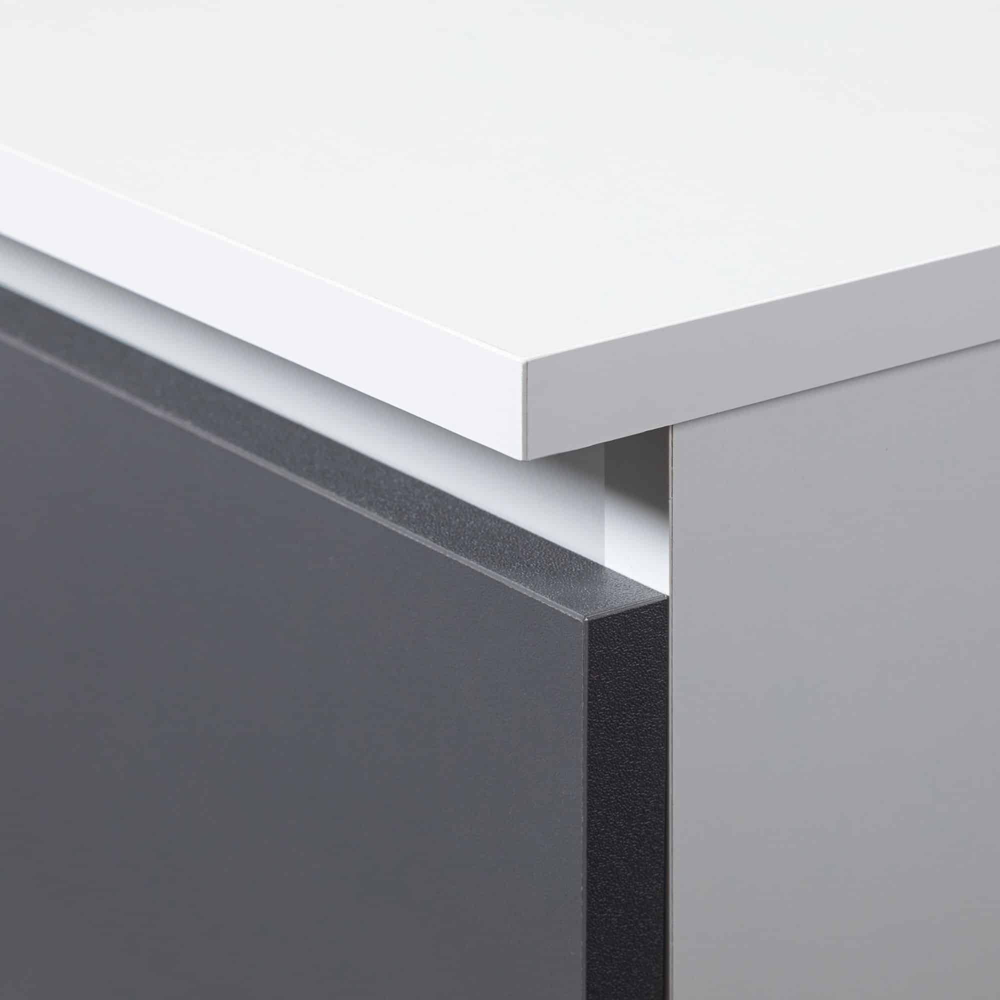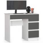 Rašomasis stalas NORE A-7, kairinis, baltas/tamsiai pilkas