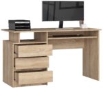 , ąžuolo spalvos ąžuolas – tai spalva, kuri jau seniai buvo labai populiari. Puikiai dera prie bet kokio interjero, puikiai dera su įvairių spalvų aksesuarais ir yra lengvai valomas. Šio universalaus atspalvio sukurtas rašomasis stalas nusipelno dėmesio. Produktas buvo sukurtas su idėja papuošti biurą, jaunimo kambarį ar namų biurą – bet kurį kambarį, kuriame yra kompiuteris. Laisvai stovintis šviesios spalvos CLP stalas tikrai nustebins savo aukšta kokybe ir itin kruopščiu darbu. Produktas pasižymi tvirta struktūra, todėl yra labai patvarus. Stalčiai, kuriuose įrengti baldai, yra erdvūs, todėl juose telpa daug biuro reikmenų, reikalingų dirbant prie kompiuterio. Baldo išmatavimai 135 cm x 77 cm x 60 cm. Stalui suteikiama 24 mėnesių garantija. Verta paminėti, kad darbo stalo nugarėlė padengta laminuota lenta, todėl baldus galima pastatyti bet kurioje kambario vietoje. – Rašomasis stalas iš dilimui atsparios laminuotos plokštės – Yra daug vietos bet kokiam išdėstymui – Stalčių ir durų fasadai pagaminti iš laminuotos plokštės – Stalčiai ir klaviatūros lentyna juda ant metalinių ritinėlių kreiptuvų – Matomi kraštai padengti ABS briauna, padidinta atsparumu pažeidimams – Savarankiško surinkimo stalas – Pristatomas vadovas – Gamintojo garantija 24 mėn. Laisvai stovintis stalas! Stalo užpakalinė dalis yra padengta laminuota lenta, todėl baldus galima pastatyti bet kur, nepridedant jų prie sienos.