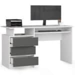 – Rašomasis stalas iš dilimui atsparios laminuotos plokštės – Yra daug vietos bet kokiam išdėstymui – Stalčių ir durų fasadai pagaminti iš laminuotos plokštės – Stalčiai ir klaviatūros lentyna juda ant metalo ritininiai kreiptuvai – Matomi kraštai padengti ABS apvadu, padidintu atsparumu pažeidimams – Savarankiško surinkimo stalas – Pridedamas vadovas – Gamintojo garantija 24 mėn.