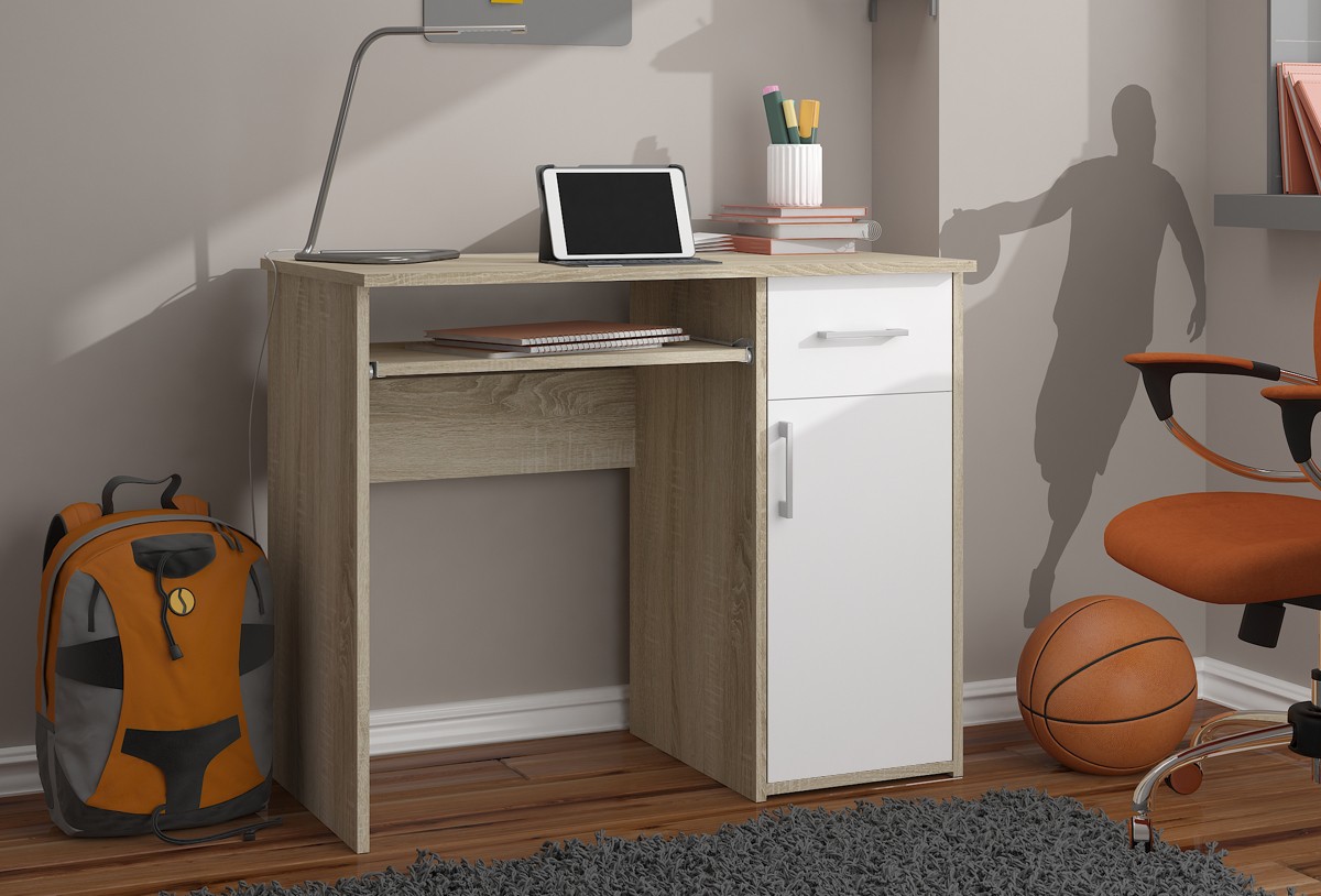 – Rašomasis stalas iš dilimui atsparios laminuotos plokštės – Yra daug vietos bet kokiam išdėstymui – Durų viduje yra viena lentyna – Stalčių ir durų fasadai pagaminti iš laminuotos plokštės – Stalčiai ir klaviatūros lentyna yra ant metalinių ritinėlių kreiptuvų – Matomi kraštai, padengti ABS briauna, kad būtų didesnis atsparumas pažeidimams – Sidabrinės stalčių ir durų rankenos – Rašomasis stalas, skirtas savarankiškai surinkti – Laisvai pastatomas stalas (laminuota lenta stalo gale) – Instrukcijos įtrauktos – Garantija 24 mėn. Laisvai stovintis stalas už jis gali būti patalpintas biure, viešbutyje ar tarnybinėse patalpose. ABS briauna apsaugo stalo kraštus nuo pažeidimų. Puikus kainos ir kokybės santykis.