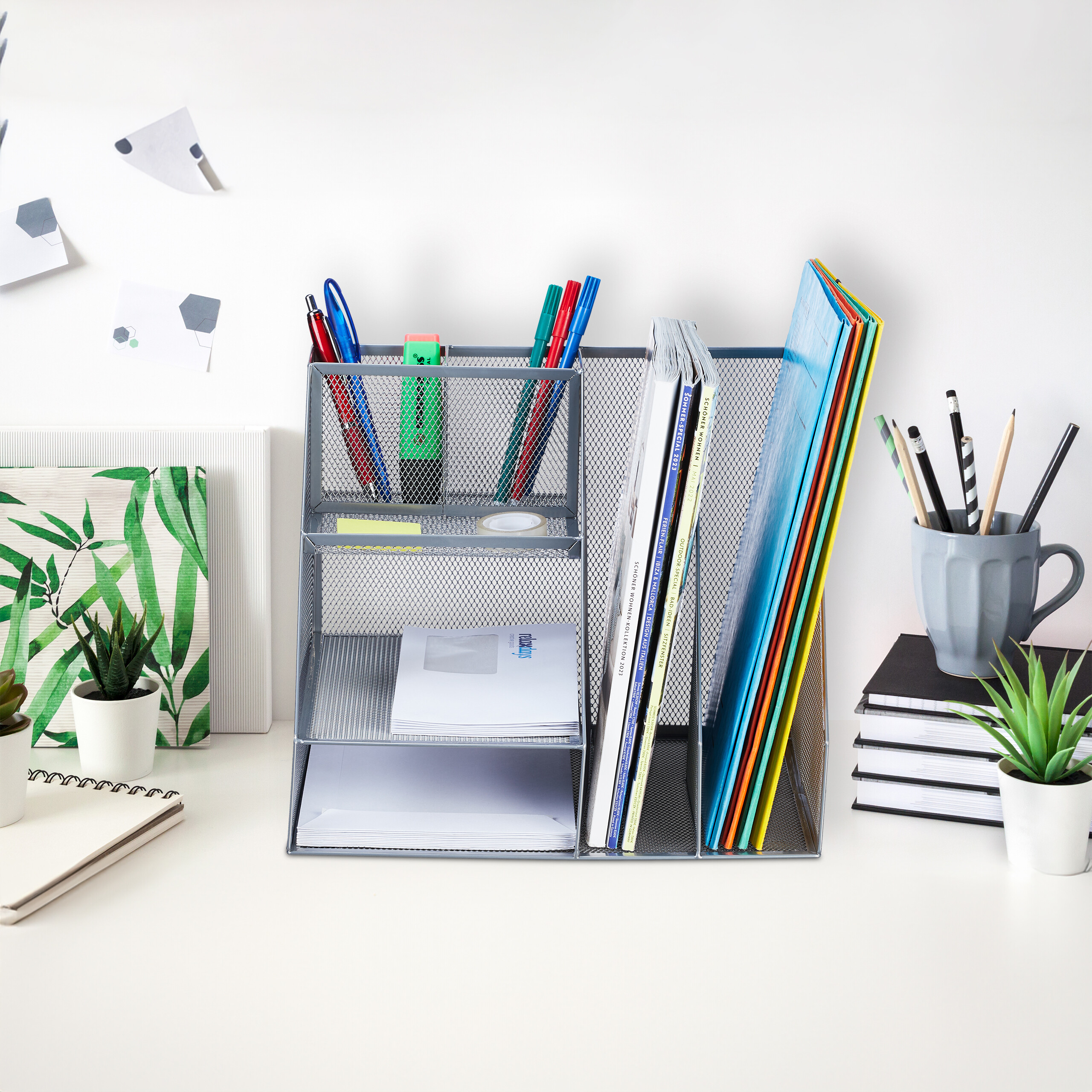 Įneškite tvarką į savo darbo erdvę su šiuo elegantišku ir funkcionaliu rašymo priemonių ir dokumentų organizatoriumi. Šis sidabrinės spalvos biuro stalo tvarkyklė ne tik padės išlaikyti tvarką, bet ir taps stilingu akcentu jūsų darbo vietoje.