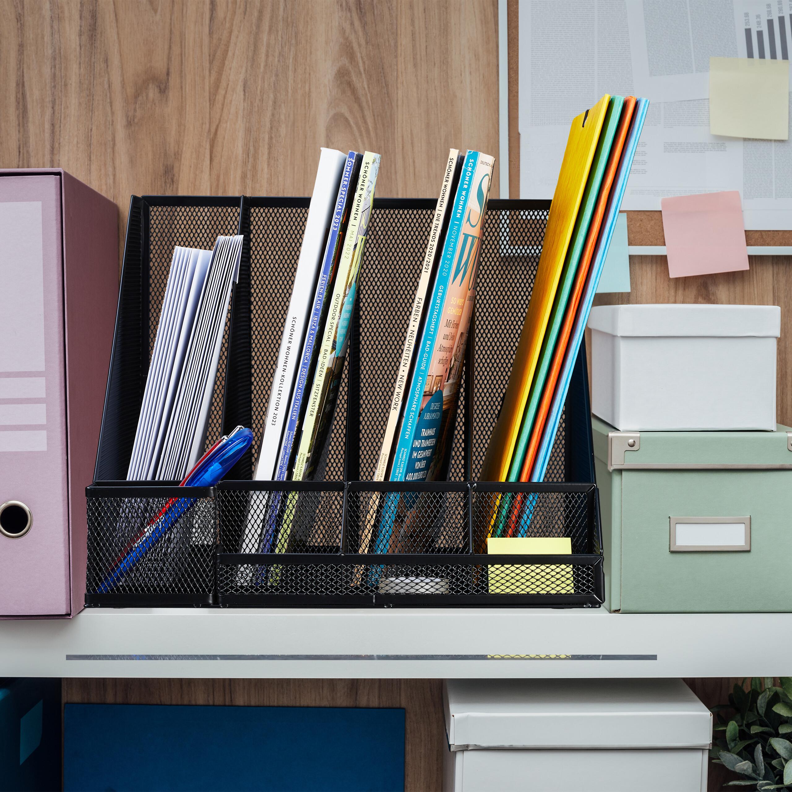 - Skyreliai: 4 erdvūs failų rinktuvo skyreliai, skirti A4 formato dokumentams, žurnalams ar sąsiuviniams.