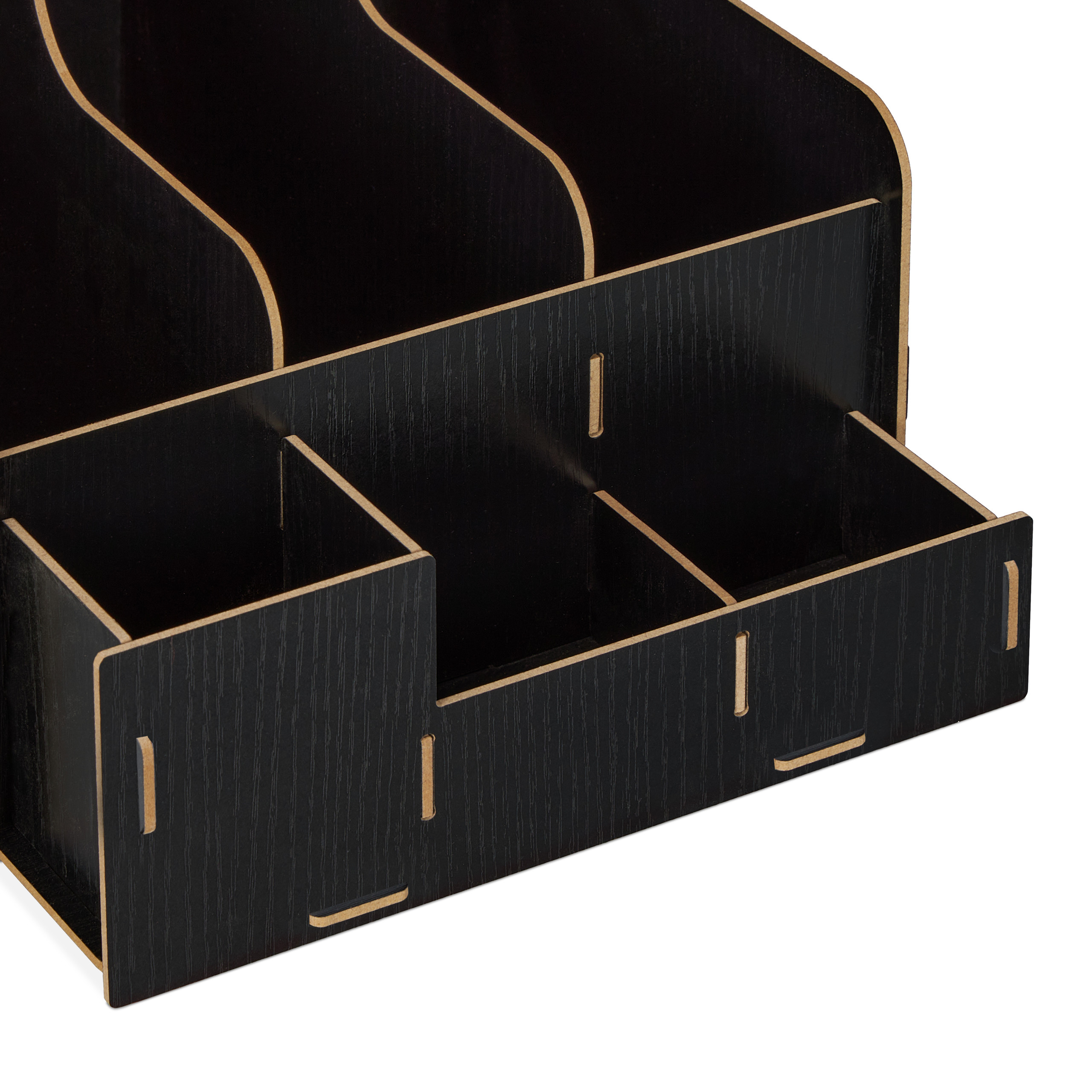 Susitvarkykite savo darbo vietą su elegantišku ir funkcionaliu rašymo priemonių ir dokumentų organizatoriumi. Šis juodos spalvos organizatorius, kurio matmenys yra 27x24x31,5 cm, yra idealus pasirinkimas tiek biurui, tiek mokyklai. Jo modernus dizainas ir praktiškumas padės jums efektyviai valdyti popierinį chaosą.