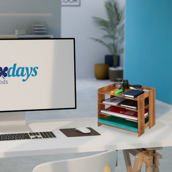 Įneškite tvarkos ir stiliaus į savo darbo aplinką su šiuo išskirtiniu rudos spalvos rašymo priemonių ir dokumentų organizatoriumi. Jo išmatavimai 27×32,5×25 cm puikiai tinka tiek biurui, tiek namų biurui, suteikiant galimybę efektyviai organizuoti ir laikyti svarbiausius dokumentus bei rašymo priemones.