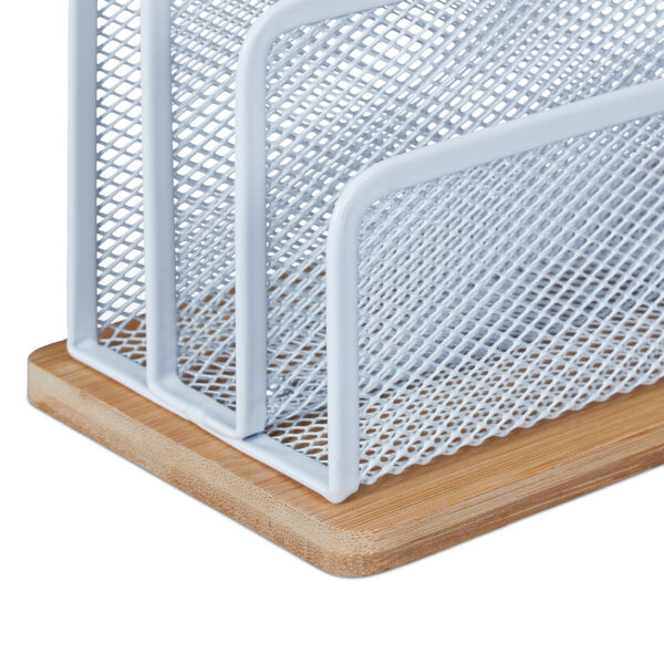 Įneškite tvarkos ir stiliaus į savo darbo erdvę su šiuo elegantišku rašymo priemonių ir dokumentų stovu. Šviesiai rudos ir baltos spalvos derinys suteikia modernumo ir šilumos jūsų stalui, o praktiškas dizainas padeda efektyviai organizuoti darbo vietą.