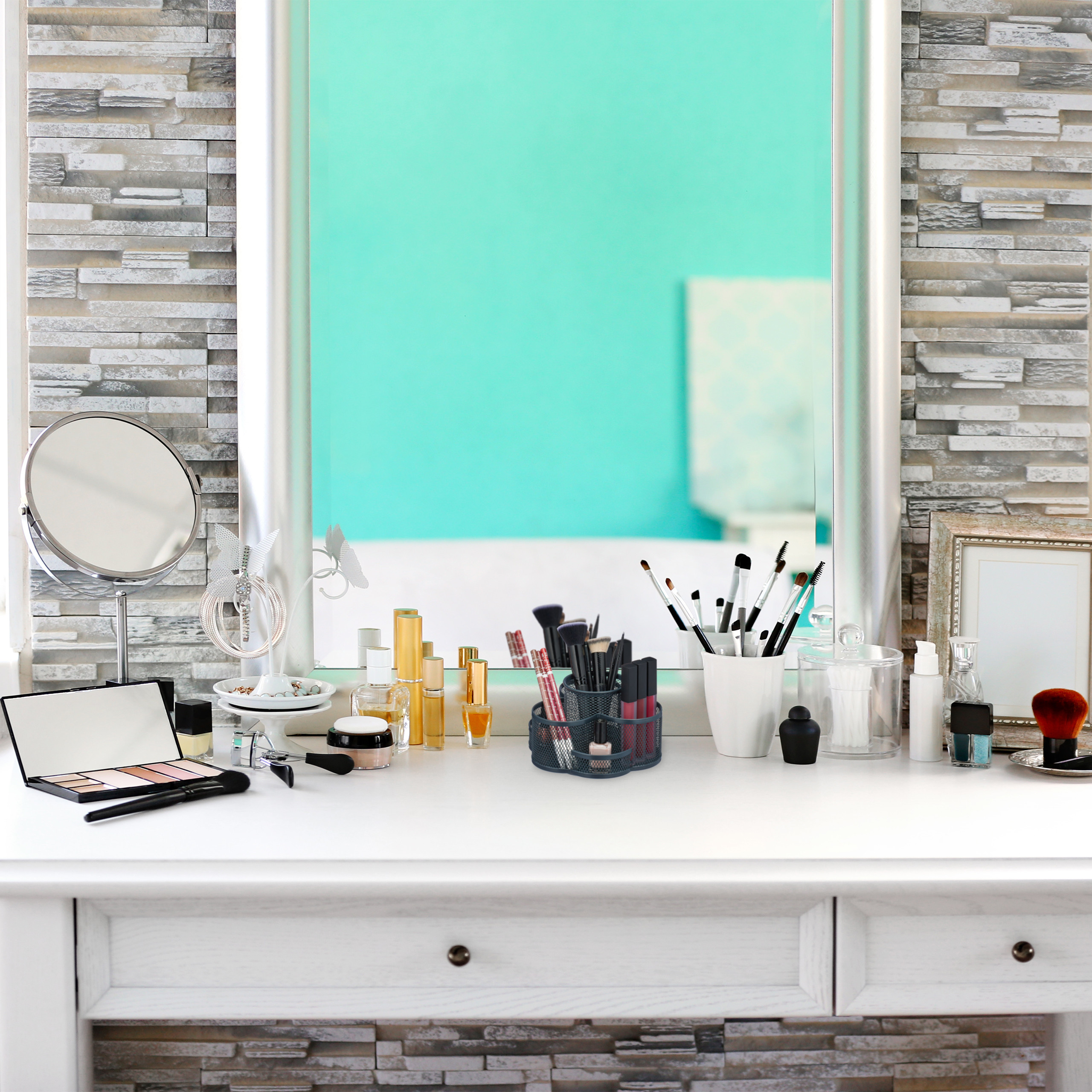 • Universalus Naudojimas: Tinka ne tik biuro reikmenims, bet ir kosmetikos šepetėliams ar kitiems smulkiems daiktams ant tualetinio stalo.
