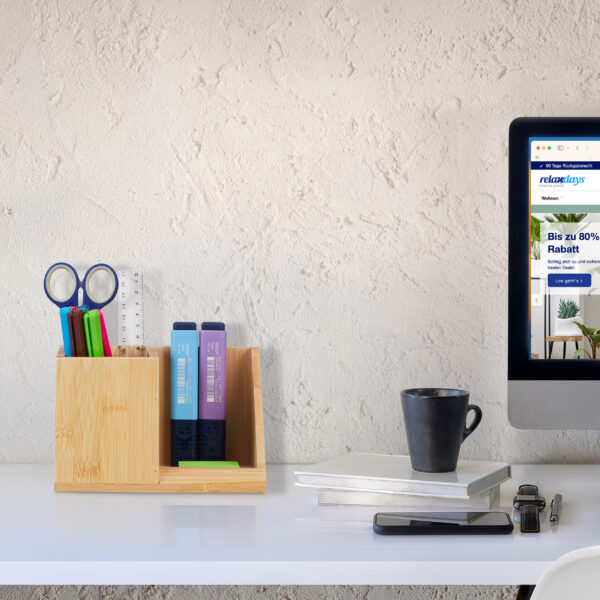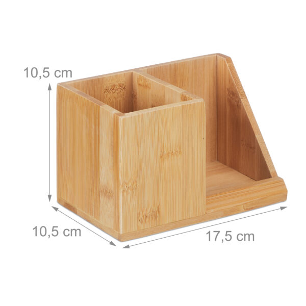 Įneškite tvarką ir eleganciją į savo darbo erdvę su šiuo kompaktišku rašymo priemonių organizatoriumi. Pagamintas iš natūralaus bambuko, šis šviesiai rudos spalvos laikiklis ne tik puikiai atrodo, bet ir yra itin funkcionalus. Jo universalus dizainas leidžia jį naudoti ne tik biure, bet ir virtuvėje ar vonios kambaryje.