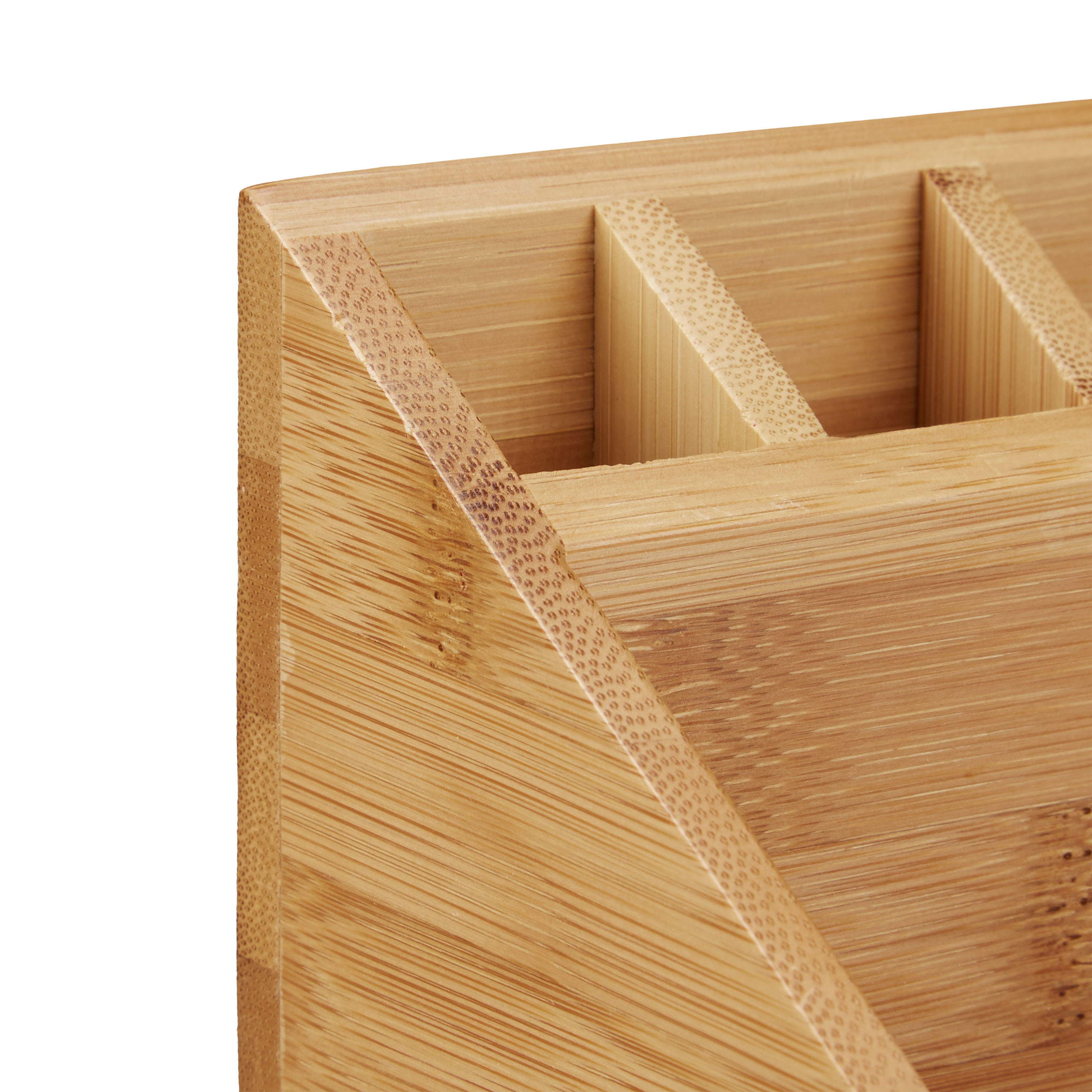 Įneškite natūralumo ir jaukumo į savo darbo aplinką su šiuo elegantišku rašymo priemonių organizatoriumi. Pagamintas iš aukštos kokybės bambuko, šis stalo laikiklis ne tik suteikia jūsų biurui šilto medienos tono, bet ir užtikrina, kad jūsų darbo vieta būtų tvarkinga ir funkcionali.