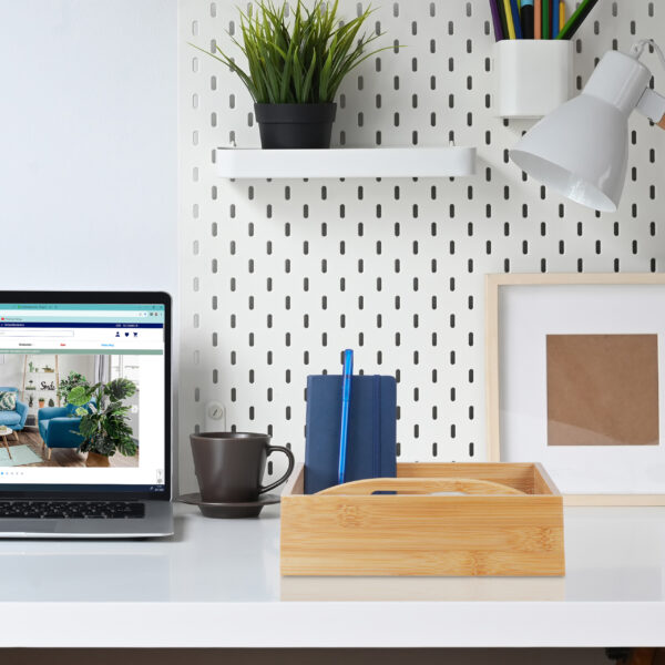 Įneškite tvarkos ir elegancijos į savo darbo ar namų aplinką su šiuo natūraliu rašymo priemonių organizatoriumi. Pagamintas iš aukštos kokybės bambuko, šis organizatorius ne tik padės išlaikyti tvarką, bet ir suteiks jūsų erdvei šilumos ir natūralumo.