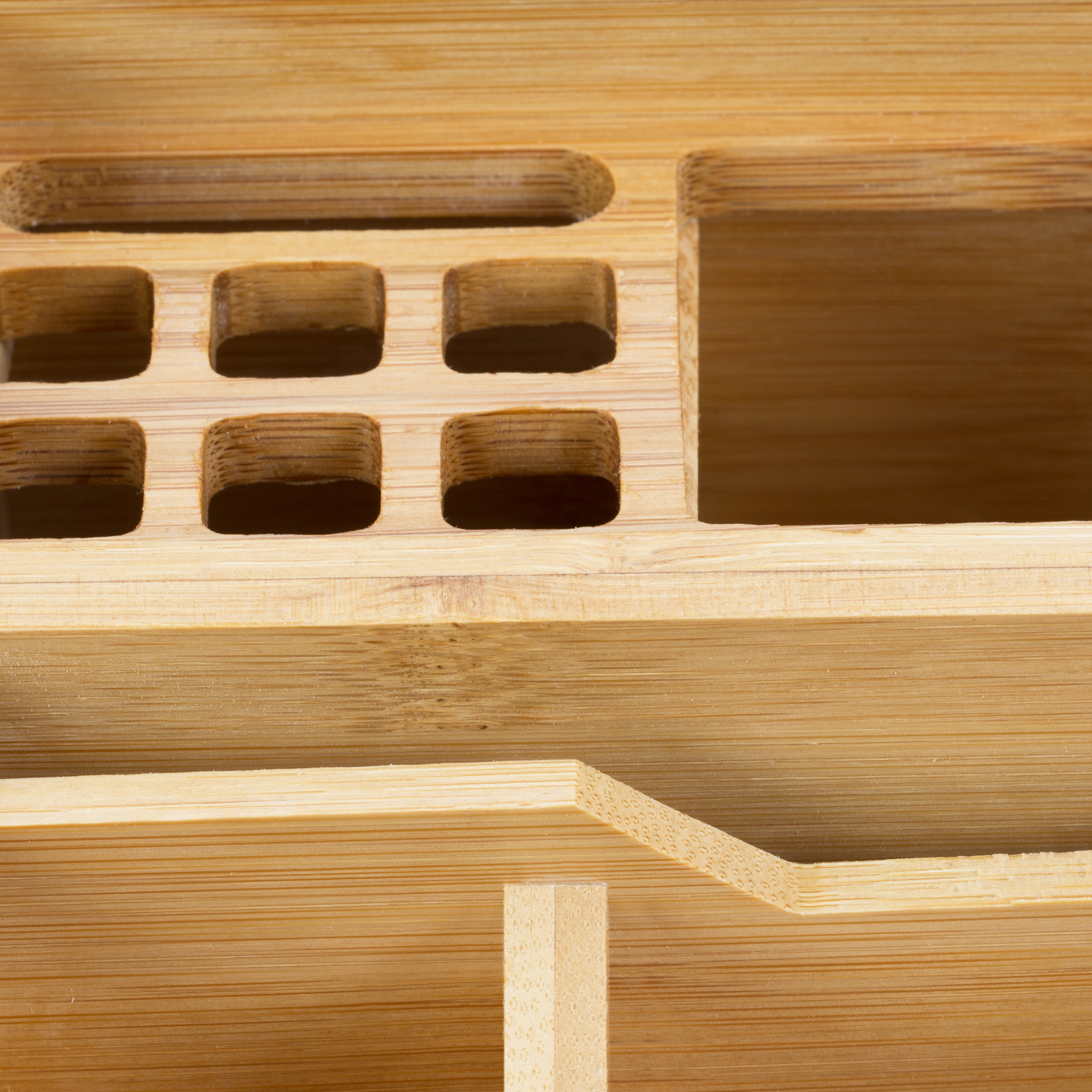 - Natūrali medžiaga: Pagamintas iš tvaraus bambuko, šis organizatorius ne tik atrodo stilingai, bet ir yra ekologiškas pasirinkimas.