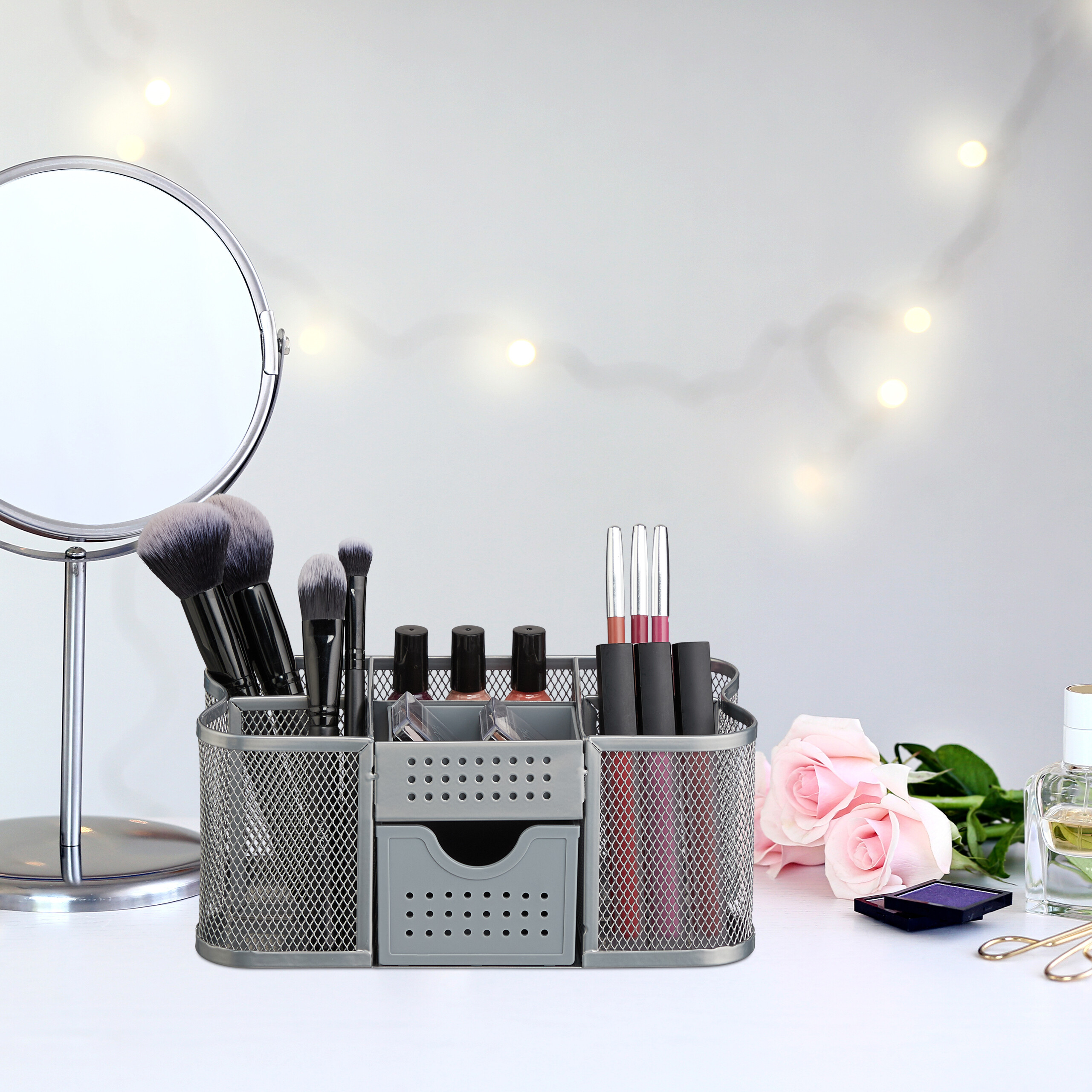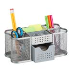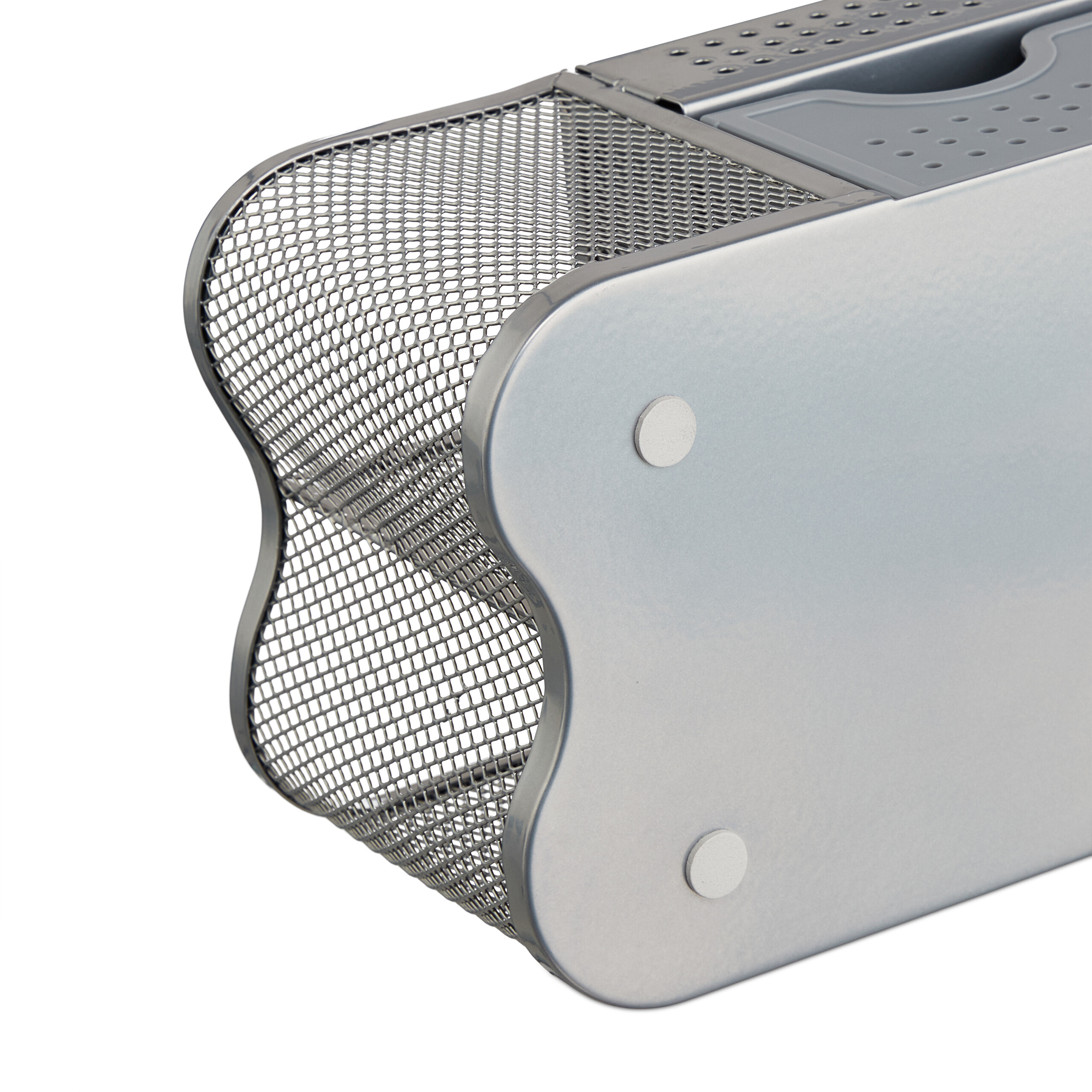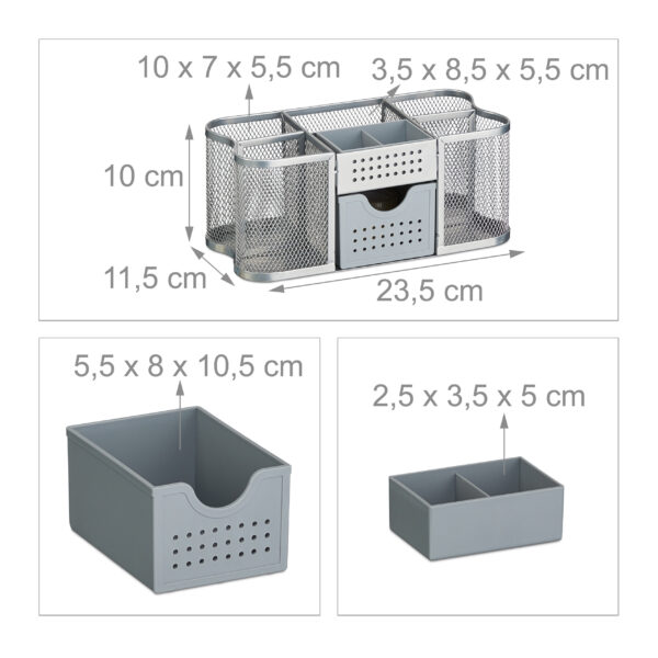 Įneškite tvarkos ir stiliaus į savo darbo vietą su šiuo elegantišku rašymo priemonių organizatoriumi. Jo subtilus sidabrinės spalvos dizainas puikiai dera prie bet kokio interjero, suteikdamas jūsų stalui modernumo ir profesionalumo.