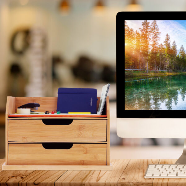 - Dydis: 24x36x28 cm – pakankamai kompaktiškas, kad tilptų ant bet kurio stalo, tačiau pakankamai erdvus, kad sutalpintų visus jūsų reikmenis.