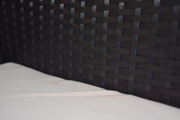 ROTANO BALDŲ RINKINYS DOUBLE Lounge 2 foteliai JUODAS KAVOS STALIAS Komplektą sudaro sofa, 2 foteliai ir stalas su grūdintu stiklu. Komplektas pasižymi ypatingu patvarumu ir atsparumu oro sąlygoms, rotangas atsparus drėgmei ir UV spinduliuotei – neblunka ir yra praktiškai nesunaikinamas. Tvirtas metalinis baldo karkasas yra labai stabilus ir atsparus korozijai. Kiekvienoje sėdynėje yra patogios pagalvėlės su įsiūtu užtrauktuku. ; ; Techniniai duomenys: Išmatavimai: Dvigulė sofa: 102x55x82cm (I/G/A), Foteliai: 56x55x82cm (P/P/A), Kavos staliukas: 71×40,5×39,5cm (I/ plotis/gylis), Medžiaga: polirotangas, Spalva: Juoda, Pagalvėlių spalva: Šviesiai smėlio spalvos, Pagalvėlių storis: 5cm, Pagalvėlių matmenys: Kėdės: 46x46x5cm (I/D/H), Laisvalaikiui: 89x44x5cm (L/D/H), Rėmas: Metalas, atsparus korozijai, Svoris: 27kg, Savarankiško surinkimo komplektas. ; STIKLAS ANT STALO YRA JUODAS; Blizgesyje. ; Dėžutės matmenys: 92x57x36 cm