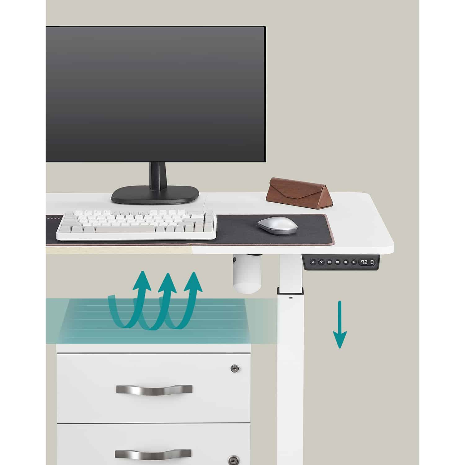 Reguliuojamo aukščio elektrinis rašomasis stalas su 60 x 140 cm stalviršiu yra puikus pasirinkimas tiek namų, tiek biuro aplinkai. Šis stalas leidžia lengvai keisti darbo poziciją iš sėdimos į stovimą, taip užtikrinant patogumą ir sveikatos priežiūrą visą darbo dieną.