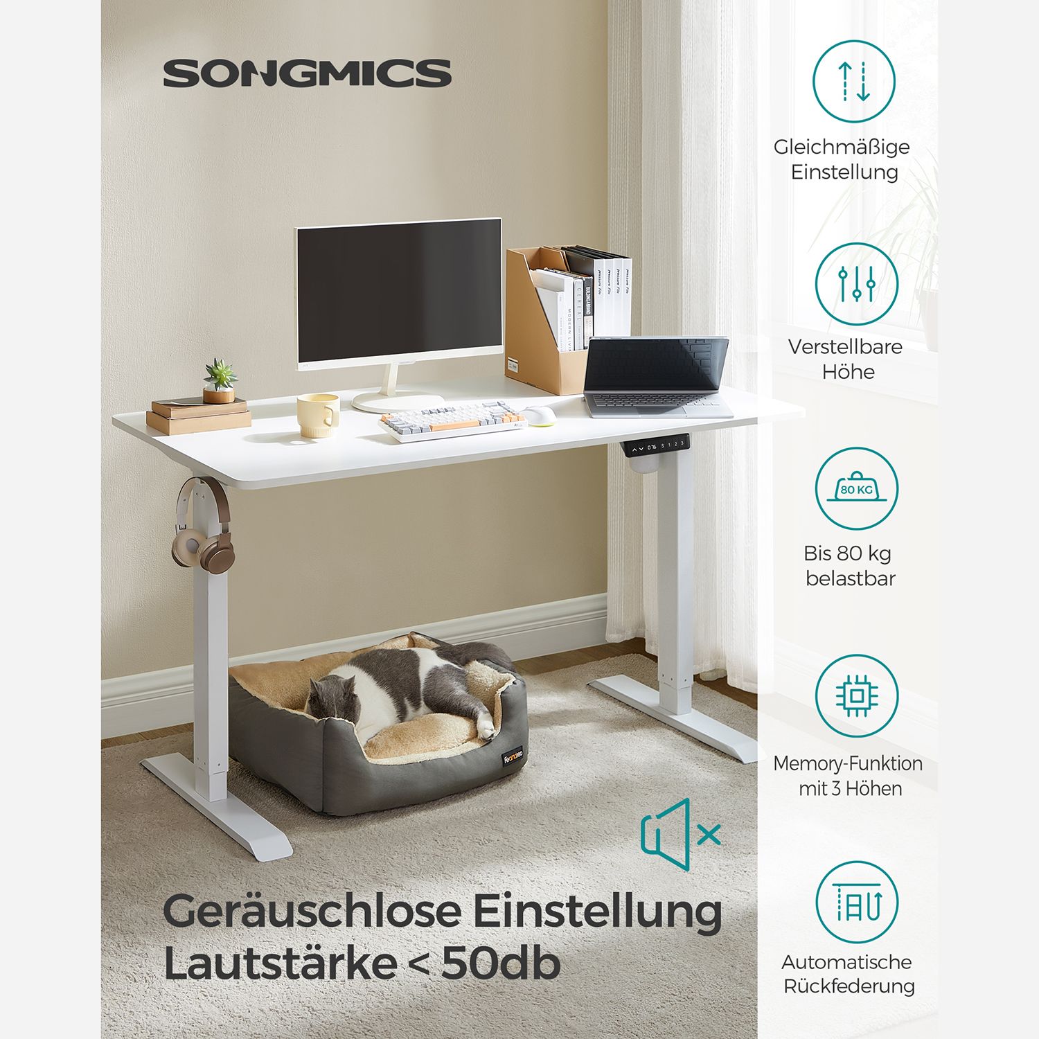 Reguliuojamo aukščio elektrinis stalas su atminties funkcija 70 x 140 cm, baltos spalvos